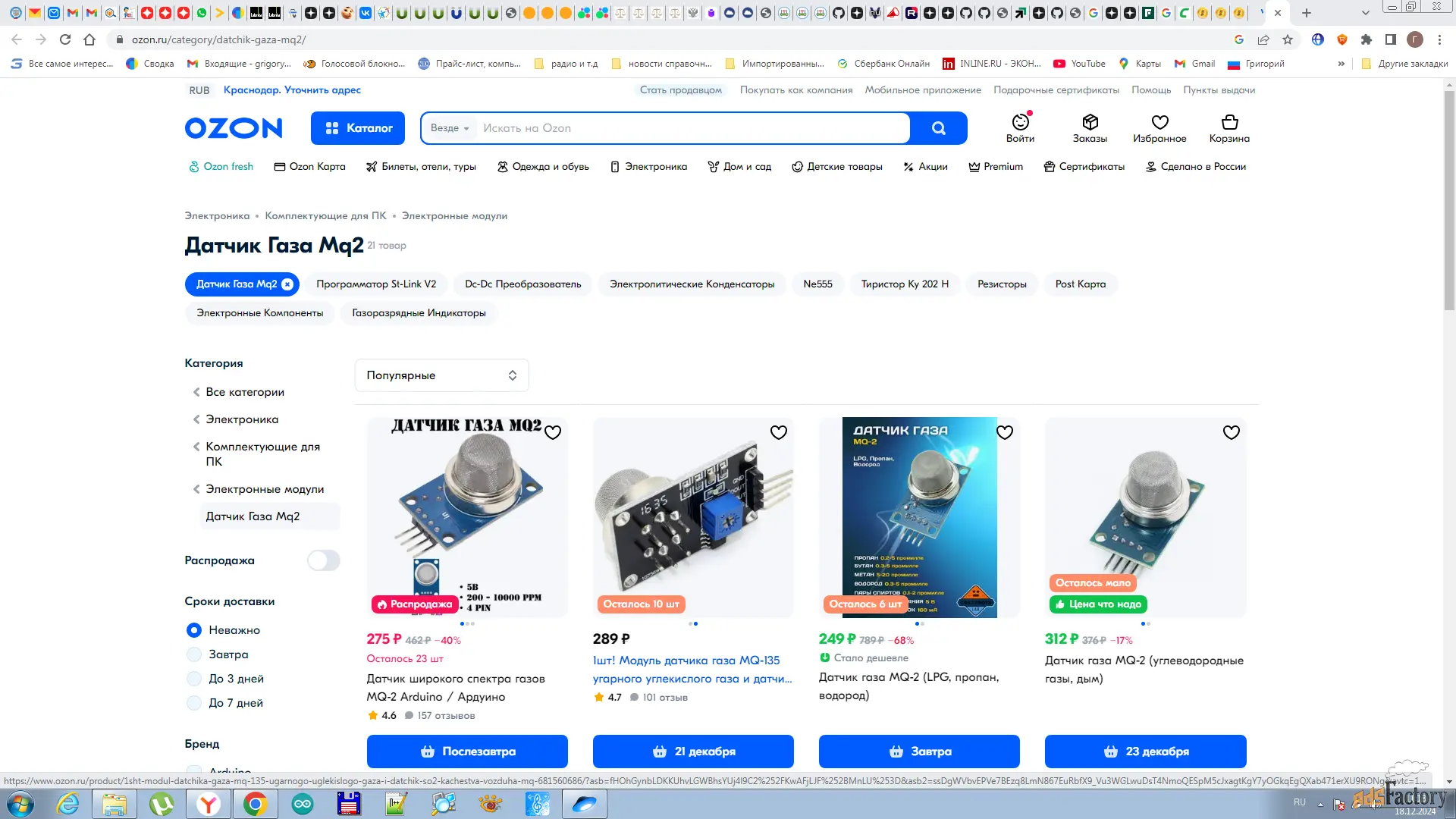 Чувствительность настраивается подстроечнsv резисторjv. Сенсор MQ-2 позволяет проводить измерения по содержанию (концентрации) опасных газов. Перед началом его использования рекомендуется прогреть, т.е. оставить включенным на 24-48 часов. Это помогает достичь стабильных показаний в процессе его дальнейшей работы. Показания датчика зависят от температуры окружающей среды. Применяется в системах пожарной охранной сигнализации и автоматизации умного дома и пр. Учитывая количество взрывов и количество пострадавших в России от неисправности газового оборудования установка газоанализатора более чем актуальна. Цена на данное изделие в интернет магазинах начинается с 300 рублей. Продается в связи стем что применено другое решение. Возможна доставка товара в другие города России,