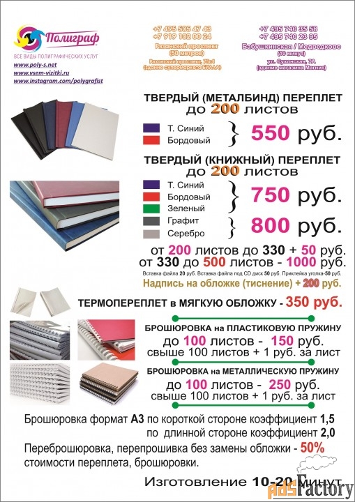 Классический книжный твердый переплет и брошюровка дипломов, диссертаций, проектов, чертежей, отчетов, презентаций. Термопереплет. Металбинд. Сшивка прошивка. Брошюровка на пластиковую и металлическую пружину.