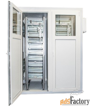В данной модели инкубатора предусмотрены две тележки, по одной на каждую камеру. В каждую тележку загружаются 10 лотков с крышками от выпадения птенцов. Вместимость каждой тележки 1500 яиц. Лотки инкубатора универсальные. Благодаря высоким бортам лотков, в них можно, как инкубировать, так и выводить цыплят. Каждый лоток оснащен крышкой, что бы вылупившийся птенец не смог бы выпасть из лотка.