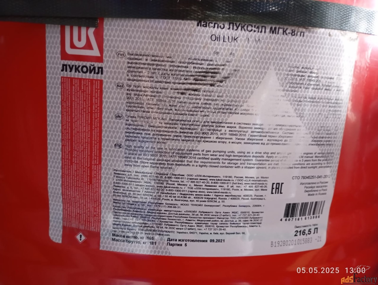 Лот №1.Масло Лукойл МГК-8ГП (срок годности сентябрь 2026 г.) - 22 бочки. № процедуры ИМ000806