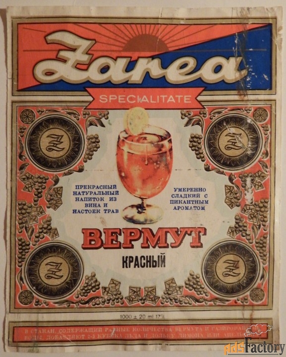 <a target=_blank title="Этикетка. Вермут красный "Заря". СССР на экспорт. 1970-е годы" href="https://www.adsfactory.ru/hobbi-otdyh-i-sport/kollektsionirovanie/drugoe/sankt-peterburg-etiketka-vermut-krasnyj-zarya-sssr-na-eksport-1970-e-gody-SPT-894311764347795">Этикетка. Вермут красный "Заря". СССР на экспорт. 1970-е годы</a>