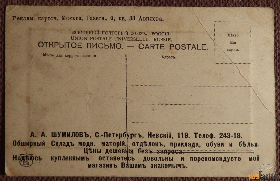 [url=https://www.adsfactory.ru/hobbi-otdyh-i-sport/kollektsionirovanie/otkrytki/sankt-peterburg-antikvarnaya-otkrytka-samara-vid-s-zhigulevskoj-pristani-reklama-SPT-894311764430805]Антикварная открытка. Самара. Вид с Жигулевской пристани. Реклама[/url]