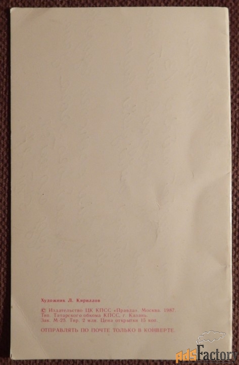 [url=https://www.adsfactory.ru/hobbi-otdyh-i-sport/kollektsionirovanie/otkrytki/sankt-peterburg-dvojnaya-otkrytka-khud-kirillov-1987-god-SPT-894311755982007]Двойная открытка. Худ. Кириллов. 1987 год[/url]