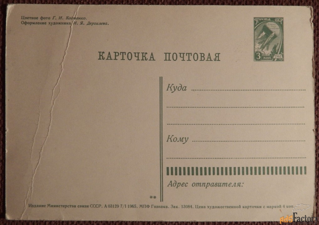 [url=https://www.adsfactory.ru/hobbi-otdyh-i-sport/kollektsionirovanie/otkrytki/sankt-peterburg-otkrytka-dergilev-1965-god-SPT-894311754754127]Открытка. Дергилев. 1965 год[/url]