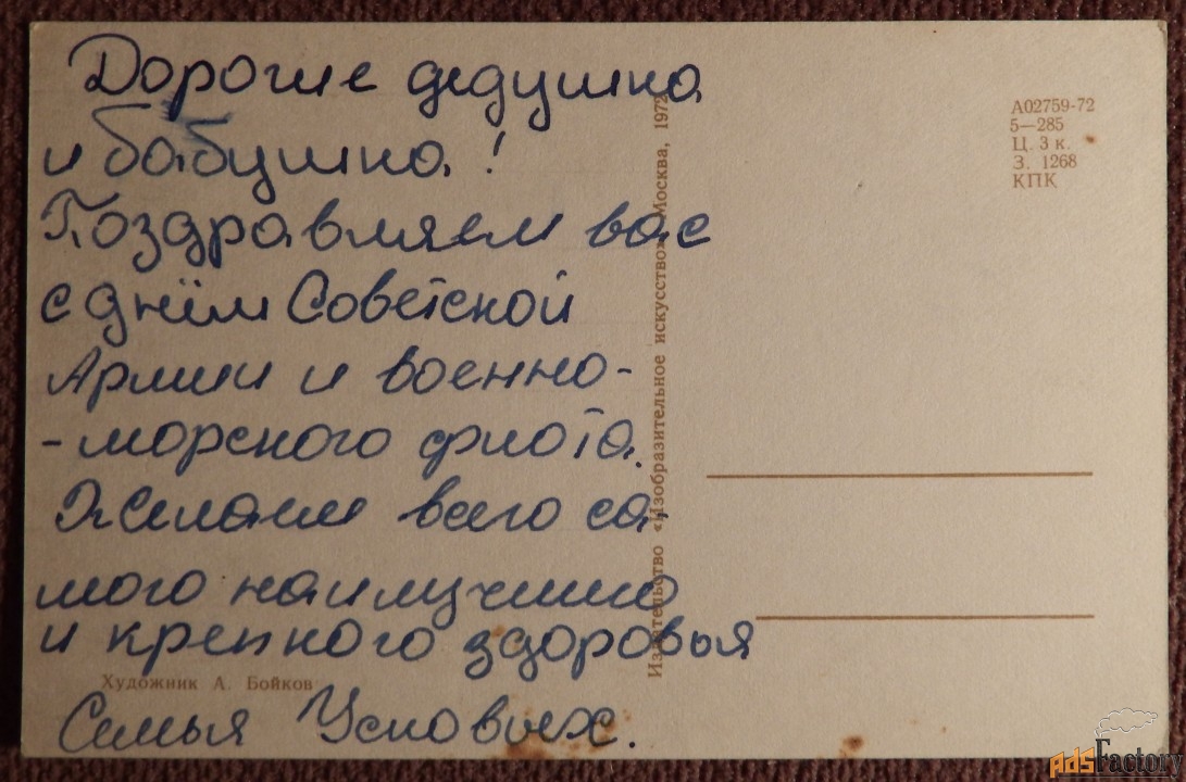 [url=https://www.adsfactory.ru/hobbi-otdyh-i-sport/kollektsionirovanie/otkrytki/sankt-peterburg-otkrytka-khud-bojkov-1972-god-SPT-894311763143695]Открытка. Худ. Бойков. 1972 год[/url]