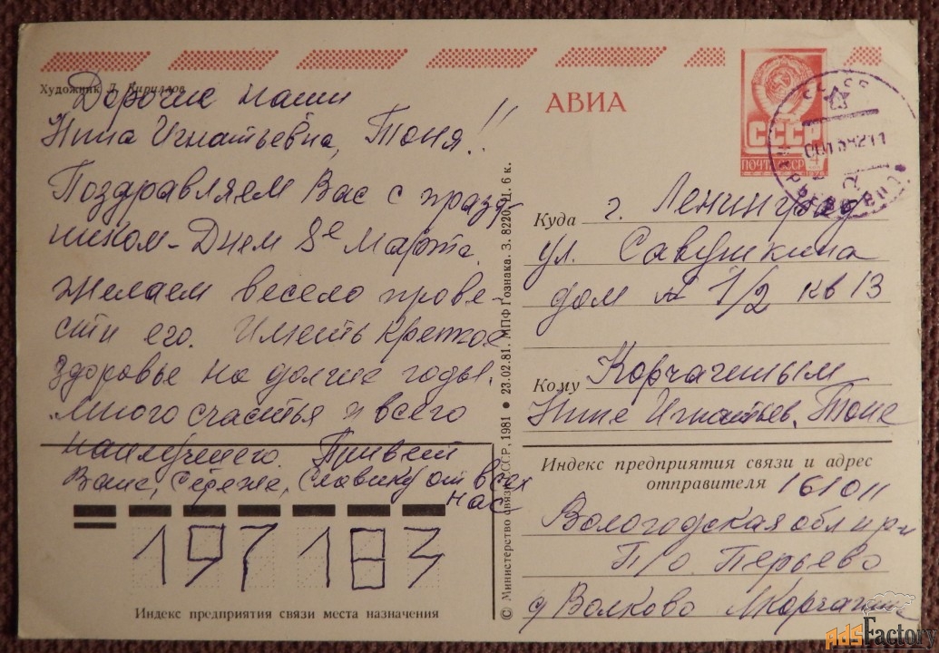 [url=https://www.adsfactory.ru/hobbi-otdyh-i-sport/kollektsionirovanie/otkrytki/sankt-peterburg-otkrytka-khud-kirillov-1981-god-SPT-894311763144254]Открытка. Худ. Кириллов. 1981 год[/url]