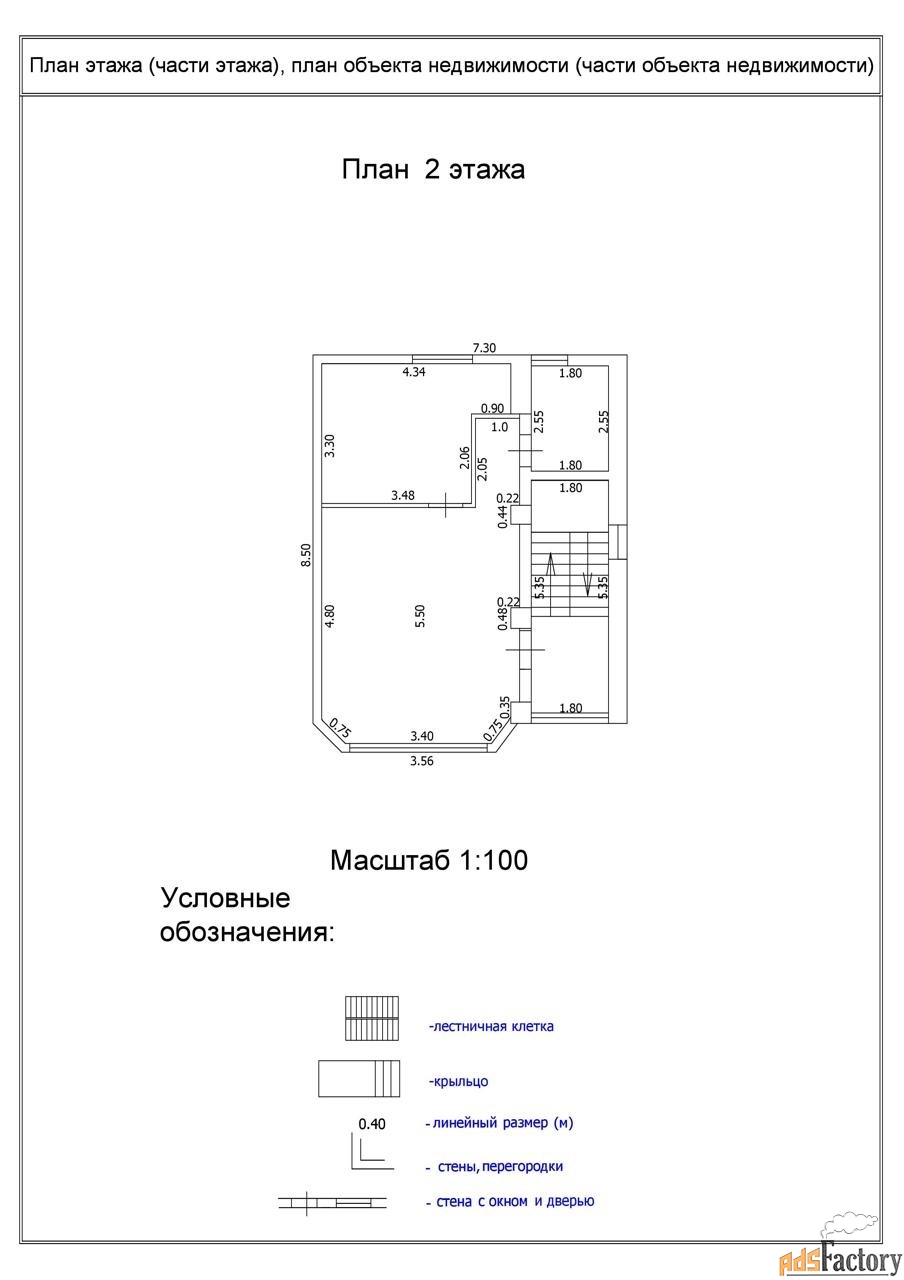 2 этаж: общая площадь - 57,6кв. м, жилая - 39,5кв. м