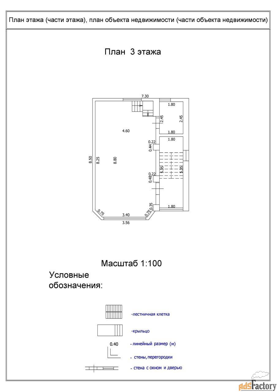 3 этаж: общая площадь - 53,6кв. м, жилая 40,3кв. м