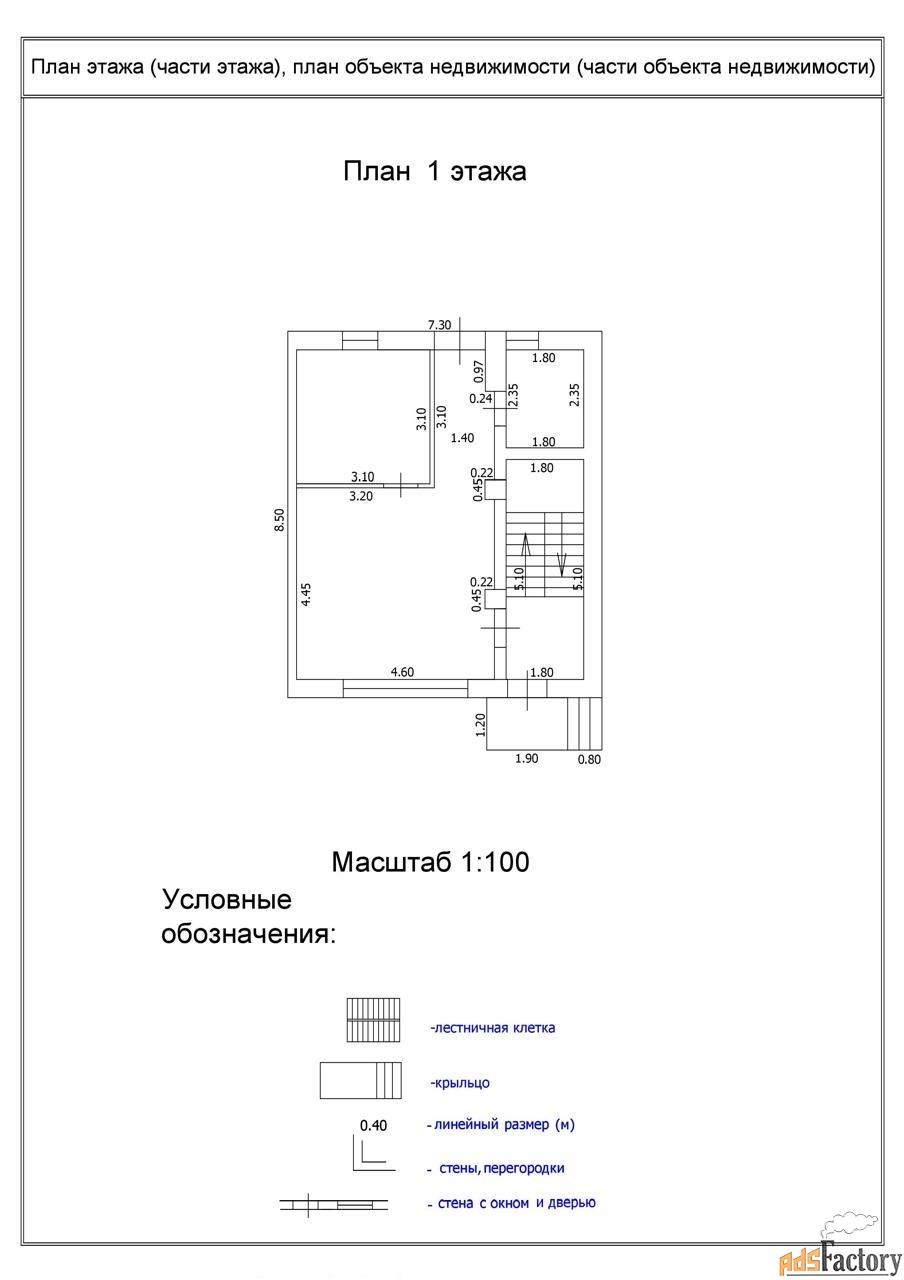 1 этаж: общая площадь - 50,4кв. м, жилая - 35,1кв. м