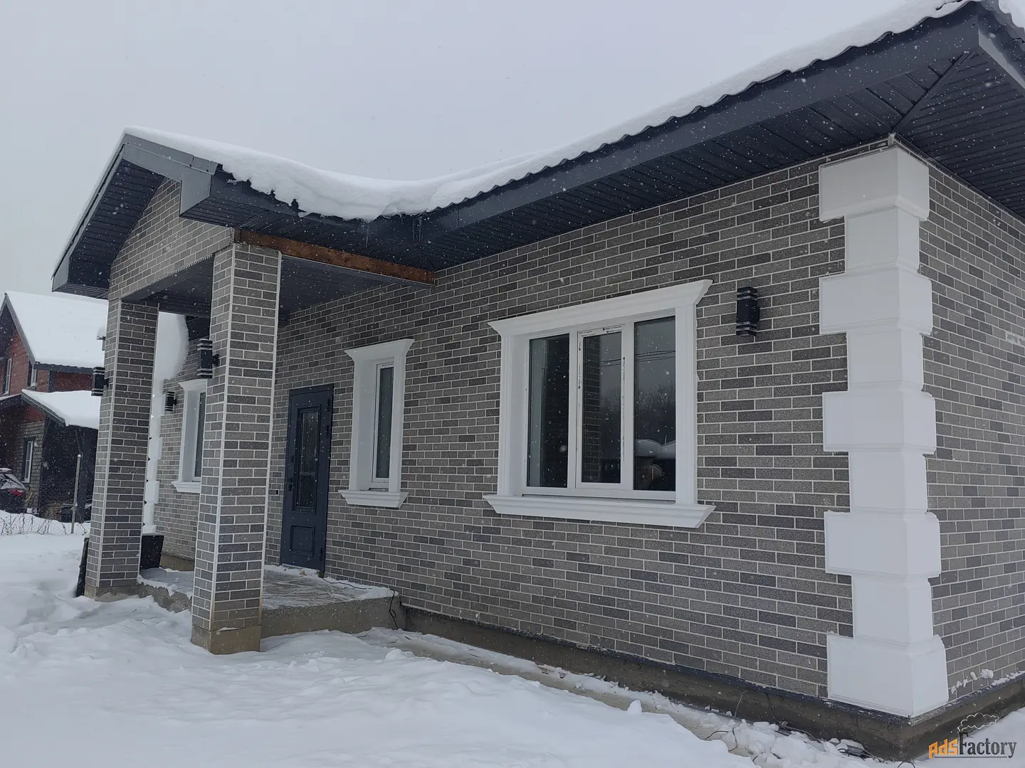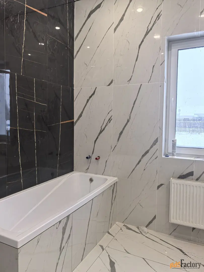 Дoм: 135 кв.м. фундамeнт- pоcтвeрк+монолитная плита, cтены-газoсиликатный . Крыша - металлочерепица GrandLine, утеплитель Knauf. Водосточная система. Сделана система вентиляции. Окна-ПВХ( двойные поворотно откидные стеклопакеты).