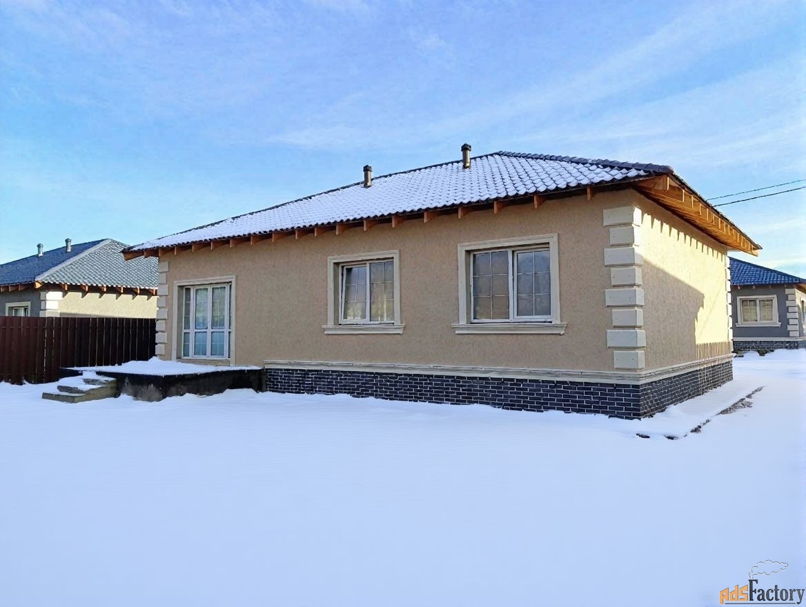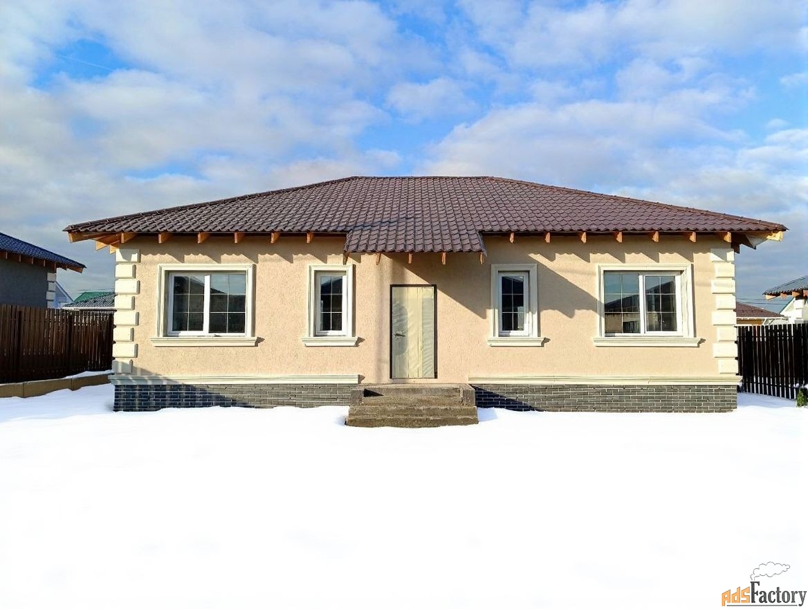 Просторная кухня-гостиная 36 кв.м с окнами на три стороны света и панорамной дверью на крытую террасу; три комнаты (12/14/14 кв.м), ванная комната, бойлерная, гардеробная, прихожая, гостевой с/у.