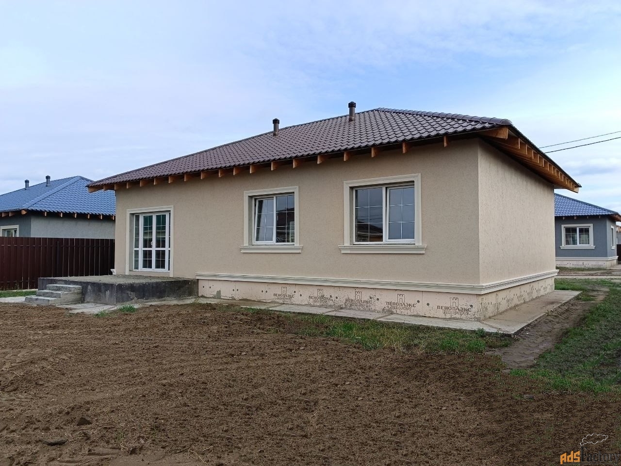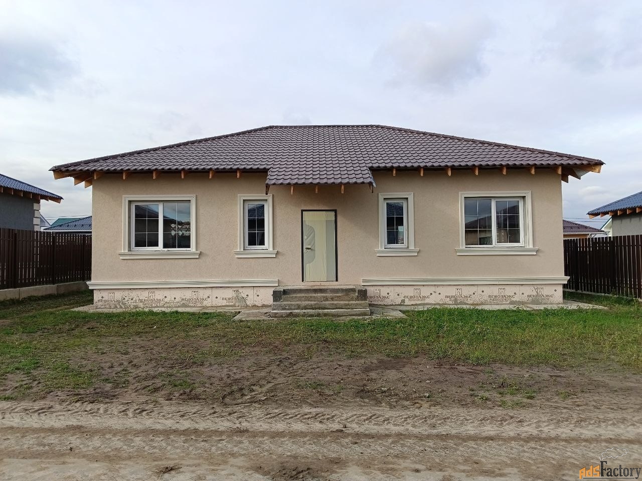 Просторная кухня-гостиная 36 кв.м с окнами на три стороны света и панорамной дверью на крытую террасу; три комнаты (12/14/14 кв.м), ванная комната, бойлерная, гардеробная, прихожая, гостевой с/у.