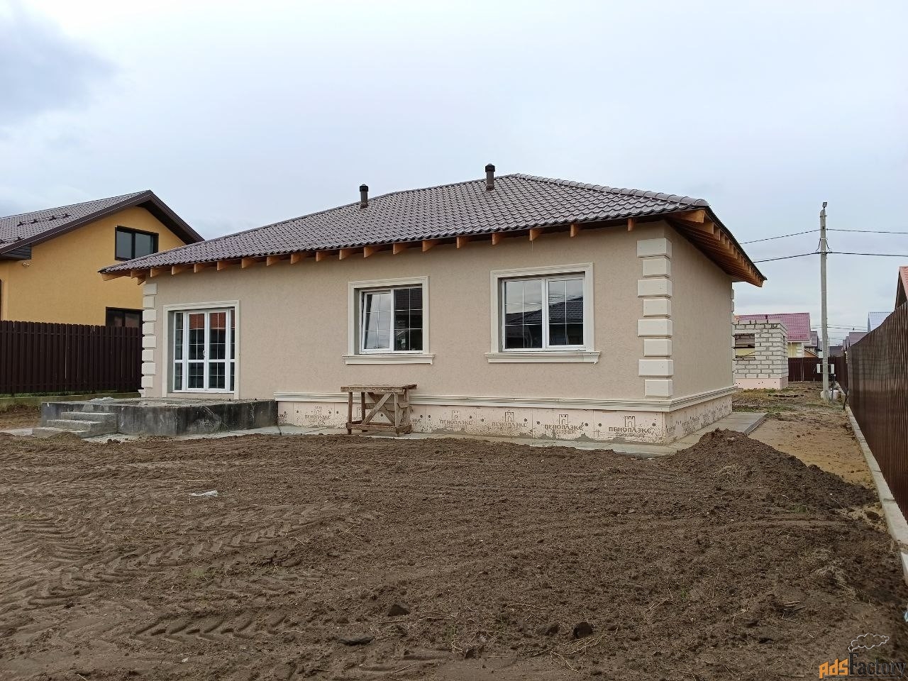 Просторная кухня-гостиная 36 кв.м с окнами на три стороны света и панорамной дверью на крытую террасу; три комнаты (12/14/14 кв.м), ванная комната, бойлерная, гардеробная, прихожая, гостевой с/у.