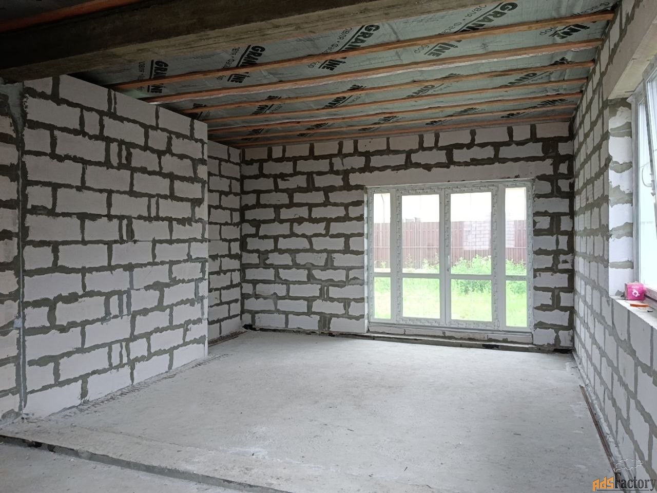 Дом без внутренней отделки. Установлены межкомнатные перегородки. Выполнено утепление перекрытия.