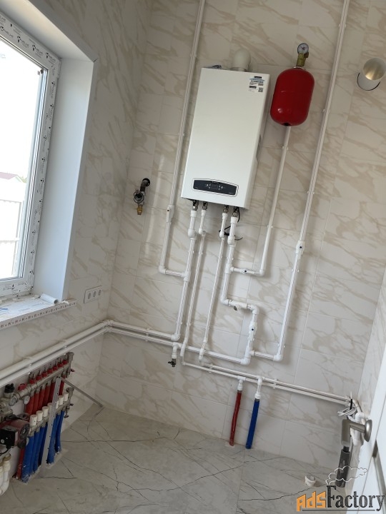 Отопление – газовое. Котел. 1 этаж -теплый пол,2- батареи с антифризом.