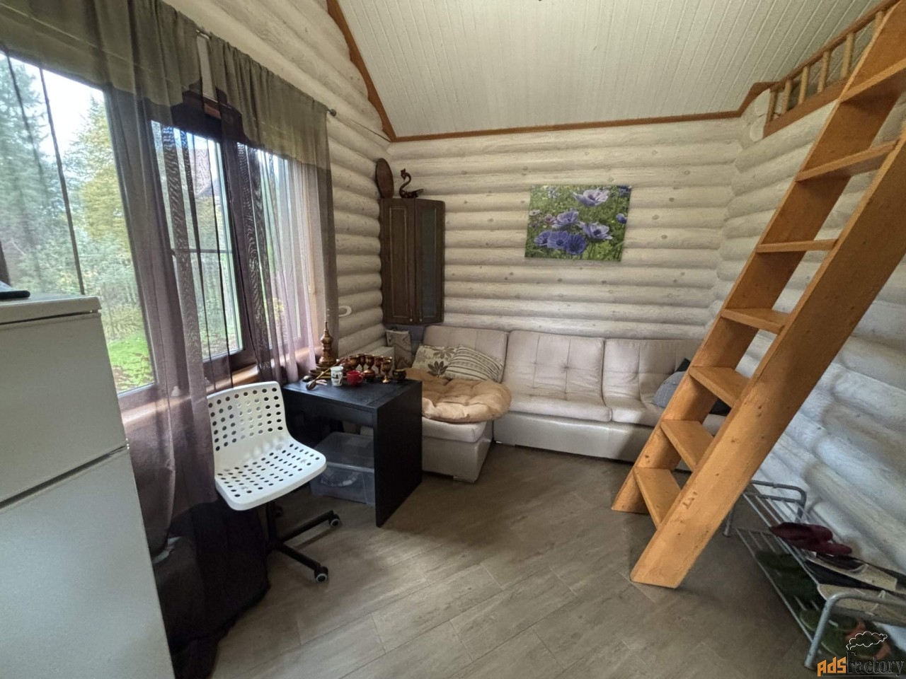 Дом: Качественный сруб из калиброванного бревна. 1 этаж: просторная кухня-гостиная. 2 этаж: две спальни с балконом.
