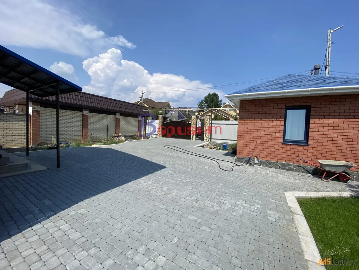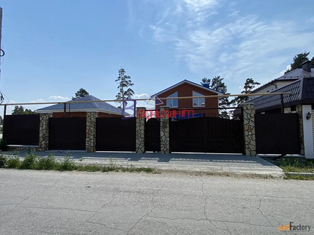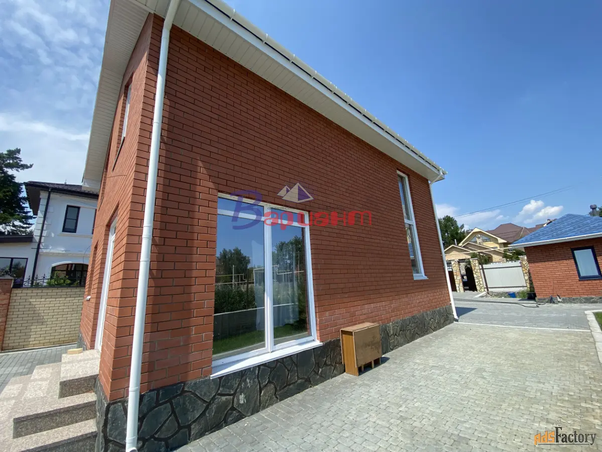 Конструкция дома: Фундамент ленточный бетонный, отделан декоративным камнем. Стены Инси блок с отделкой из красного кирпича Кемма. Крыша металлочерепица, 4-х слойное утепление. Водоотводы на крыше установлены.