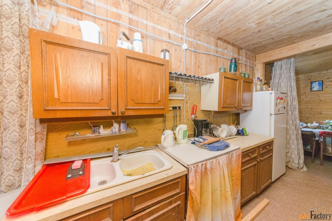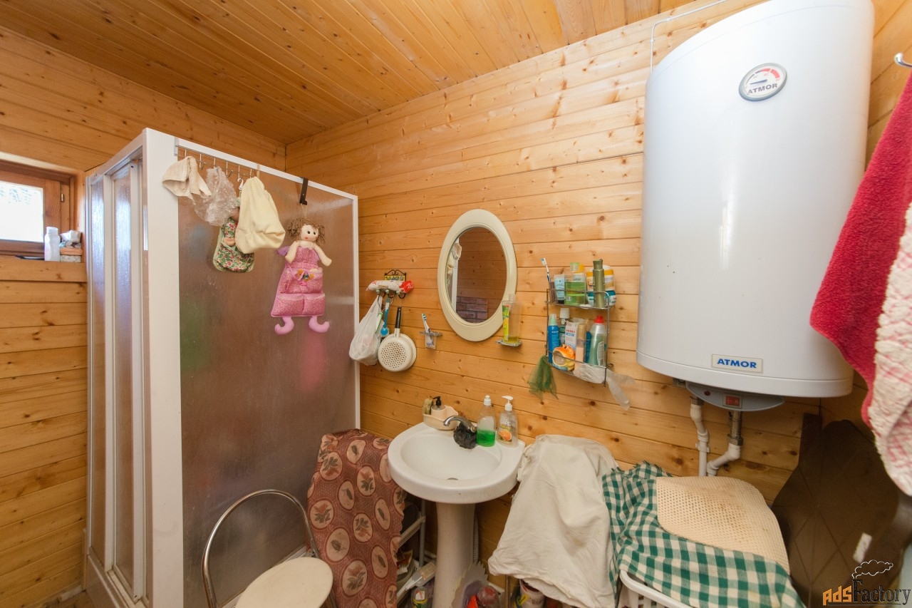 Дом подходит для зимнего проживания, внутри есть печь и санузел.