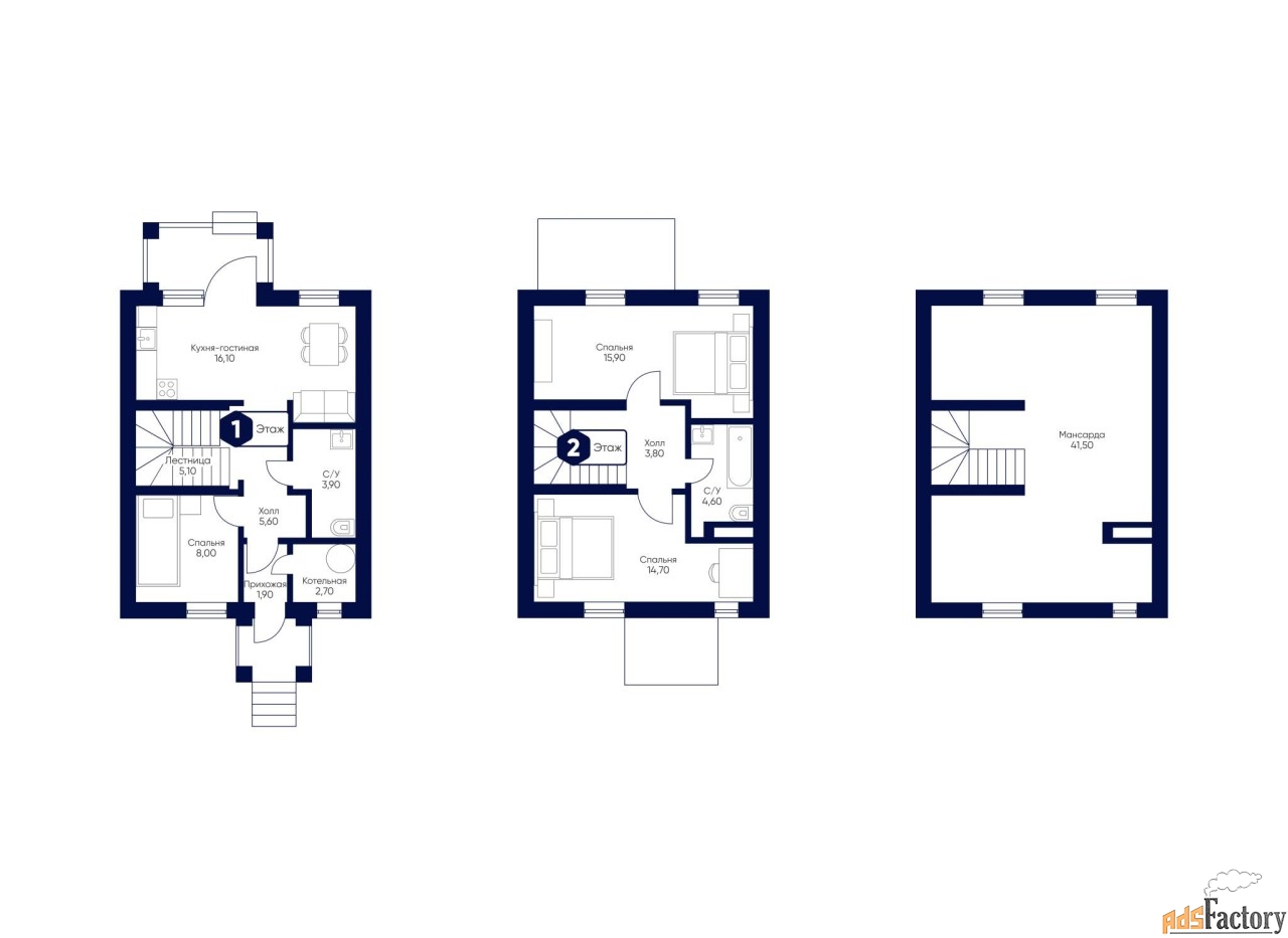 - Мансарда: 41.5 м