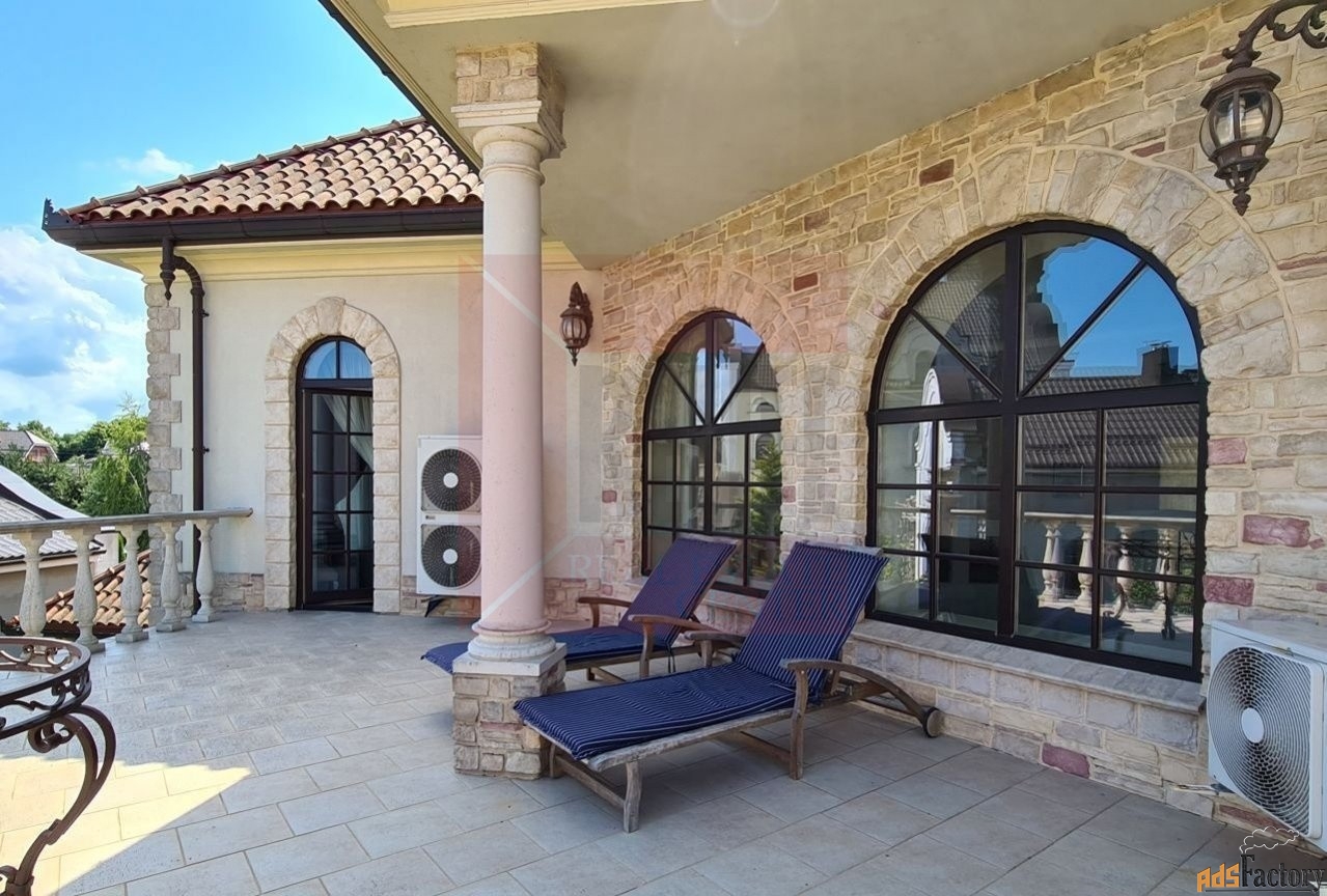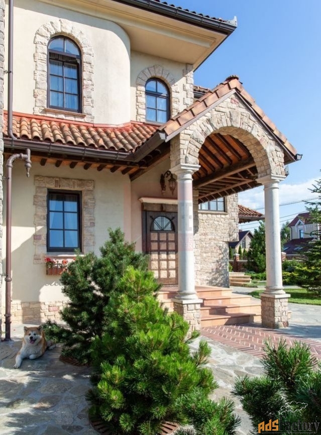 Арт. 31072876 <br> «Увидев однажды и влюбиться, это возможно!» <br>Продаётся дом выполненный в тосканском стиле, который олицетворяет красоту и натуральность окружающего ландшафта, является воплощением романтизма и эстетики. Проект реализован с привлечением итальянского и российского архитекторов. Для внутренней и наружной отделки дома использовались только натуральные материалы теплых и природных оттенков: камень, натуральное дерево, керамическая черепица (изготовленная для северных районов Италии). <br> <br>Дом площадью 689 квадратных метров представлен в трех этажах: <br> <br>1 этаж: просторная гостиная 60.82 кв.м. с камином, столовая 31.73 кв.м. с панорамным остеклением и видом на живописный внутренний дворик, кухня 18.4 кв.м. выполнена в зеленых тонах, что напоминает о великолепных кипарисах, лозе винограда и листьях оливковых деревьев, две гостевые спальни с санузлом. <br>Оборудована спа-зона, которая включает в себя хамам, баню на дровах, большой бассейн 21 кв.м. с выходом в зону отдыха с мангальной и винным погребом. <br> <br>2 этаж: три спальни с гардеробной и санузлом для каждой и выходом на просторную открытую террасу. <br> <br>Мансарда: оборудованный спортзал с комнатой отдыха и выходом на балкон, санузел. Винтовая лестница ведущая в башню со смотровой площадкой. <br> <br>В интерьере данной недвижимости можно увидеть присутствие испанского и французского направлений, взятых из средиземноморского стиля. Дом укомплектован особой мебелью, отличается она классическими линиями, искусно отполированными поверхностями, кованными и витражными вставками в элементах декора. <br> <br>Дом расположен на земельном участке 11 соток, на котором выполнен оригинальный ландшафтный дизайн. Высажены вечнозеленые хвойные деревья и кустарники. Закрытый внутренний дворик с дорожками, вымощенными гранитом. <br>Спешите приобрести элегантность и романтизм Старого Света !!!