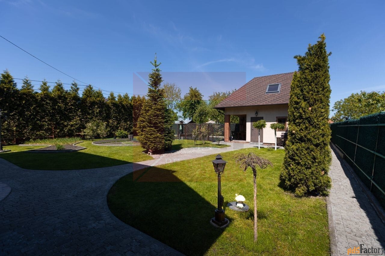 Арт. 66916992 <br>Продаётся просторный дом, расположенный в тихой, зеленой зоне Калининграда по улице Тюльпановой. На территории имеются отдельно баня, беседка для отдыха и барбекю, детская площадка. <br>Общая площадь дома 280 кв.м., представлен в трех этажах:<ol><li><span class=«ql-ui» contenteditable=«false»></span>первый этаж: гостиная с камином и выходом на задний двор - 36,6 кв.м., кухня - 14,3 кв.м., кабинет - 13,7 кв.м., совмещенный санузел - 3,8 кв.м., гараж на 1 автомобиль - 21,3 кв.м., котельная - 5,2 кв.м., прихожая - 5 кв.м., и холл - 16,6 кв.м., с лестницей на второй этаж </li><li><span class=«ql-ui» contenteditable=«false»></span>второй этаж: спальня - 16,2 кв.м., с гардеробом - 6 кв.м., хозяйская спальня - 27,6 кв.м., с гардеробом - 6 кв.м. и выходом на балкон - 1,6 кв.м., санузел с ванной - 18,9 кв.м., спальня - 22,4 кв.м., холл - 20 кв.м.,</li><li><span class=«ql-ui» contenteditable=«false»></span>мансардный этаж: 44,6 кв.м., с двумя мансардными окнами.</li></ol><p class=«ql-align-justify»> Дом расположен на благоустроенном 8.5 соток в собственности. На участке произведено озеленение, высажены плодовые и вечнозеленые растения. Участок обнесен зеленой изгородью из туй высотой более 5 метров, что обеспечивает приватность и защищенность. <p class=«ql-align-justify»>Баня: Настоящий аромат хвойных пород создаст атмосферу полноценного отдыха. На втором этаже бани расположена подогреваемая комната отдыха для максимального комфорта. <p class=«ql-align-justify»>Детская площадка: Безопасная площадка с мягким покрытием, бассейном, батутом и качелями для детей и родителей.<p class=«ql-align-justify»> Просторная ВВQ-зона с большим столом на 6 человек, идеально подходящая для встреч с друзьями и семейных обедов на свежем воздухе. <p class=«ql-align-justify»>Дом оборудован альтернативным источником питания и стабилизатором напряжения, обеспечивая непрерывное электроснабжение. Экологичность: Две скважины одна для полива, другая артезианская, предоставляющая чистую питьевую воду. Канализация оборудована септиком, очищающим воду на 98%. <p class=«ql-align-justify»>Внутри выполнен качественный ремонт. Имеется вся необходимая для жизни техника и мебель. <p class=«ql-align-justify»>Особняк расположился в отличном районе, в котором есть все необходимое для жизни. В непосредственной близости от дома, находятся: магазины, остановка общественного транспорта. Экологически чистое место, вдалеке от крупных транспортных магистралей. Тишина, спокойствие, но при этом быстрый доступ в любую точку города и морское побережье. <p class=«ql-align-justify»> <p class=«ql-align-justify»>При покупке возможны любые расчеты, подходит под ипотеку.