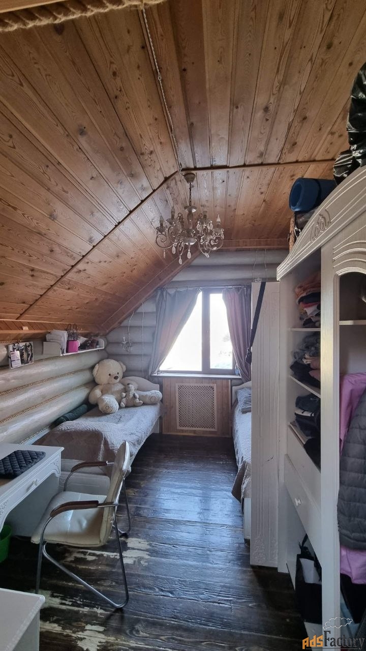 На первом этаже - кухня, большая гостиная и санузел, на втором этаже - три спальни.