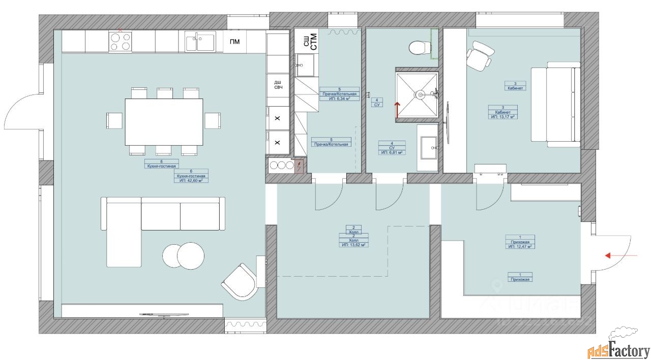 Двухэтажный дом полностью меблирован и оснащен всей необходимой техникой