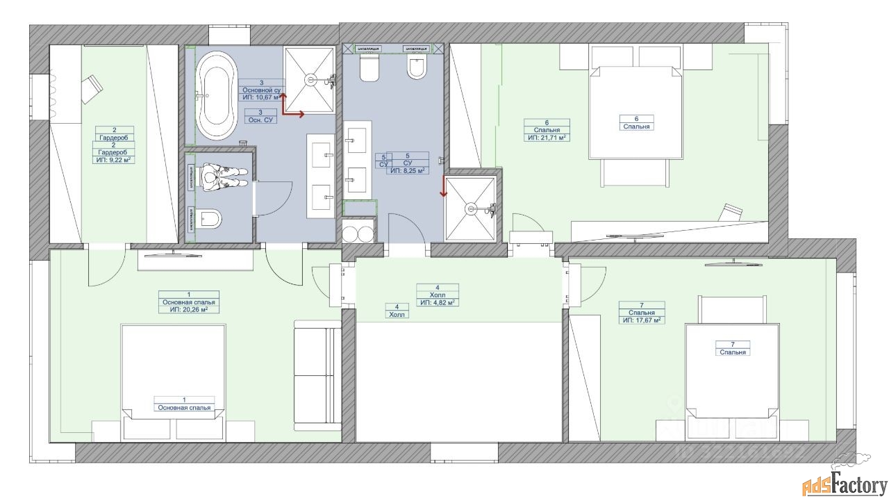 3 уютные спальни с панорамными окнами, текстилем и коврами на 2-ом этаже, мастер спальня с собственной гардеробной комнатой и санузлом