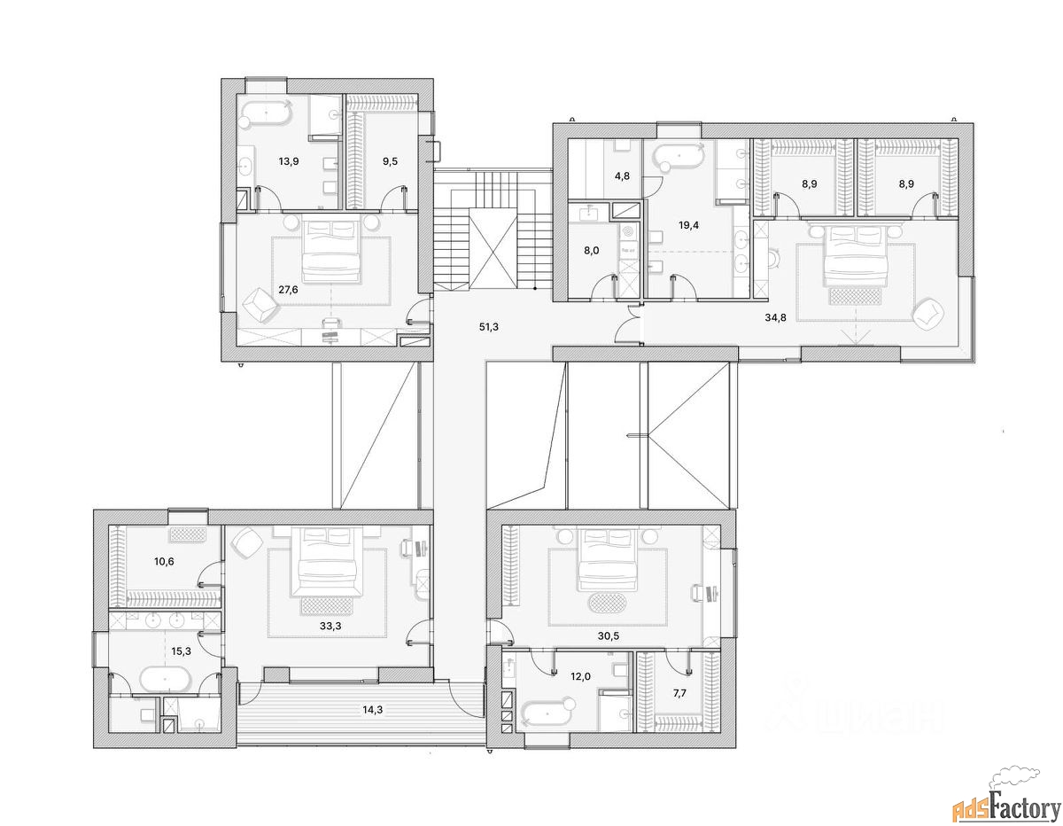 Дом сдается со свободной планировкой (формат shell & core) — внутри нет перегородок и отделки, заведены все инженерные коммуникации. Такое решение даёт полную свободу: можно спроектировать любое количество спален, кабинетов или зон отдыха, выбрать собственный стиль интерьера и создать пространство, идеально подходящее под ритм жизни вашей семьи.