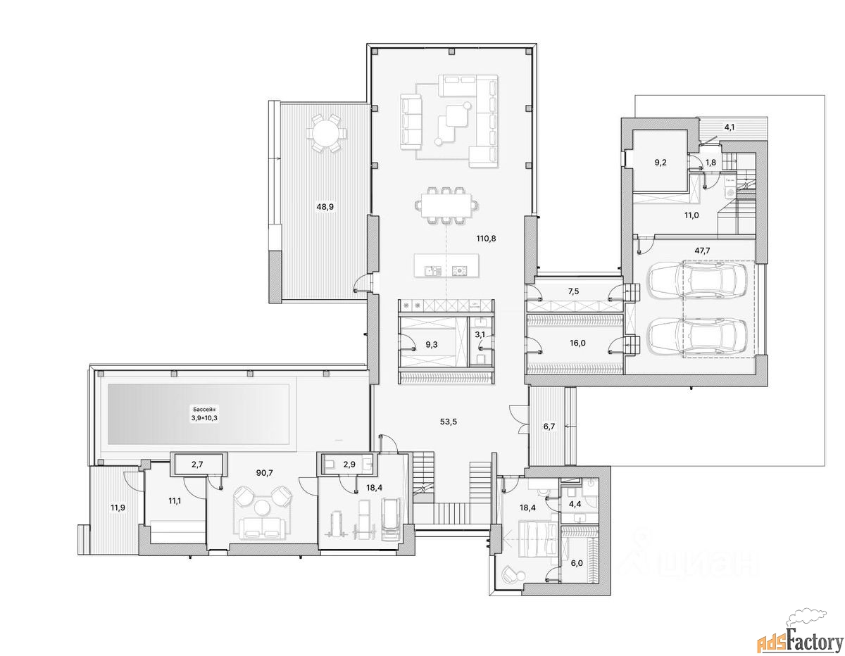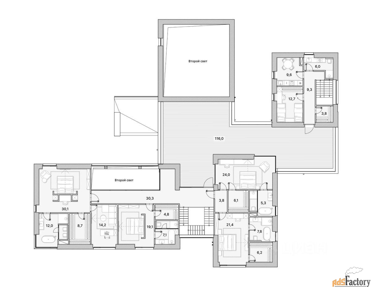 Дом сдается со свободной планировкой (формат shell & core) — внутри нет перегородок и отделки, заведены все инженерные коммуникации. Такое решение даёт полную свободу: можно спроектировать любое количество спален, кабинетов или зон отдыха, выбрать собственный стиль интерьера и создать пространство, идеально подходящее под ритм жизни вашей семьи.
