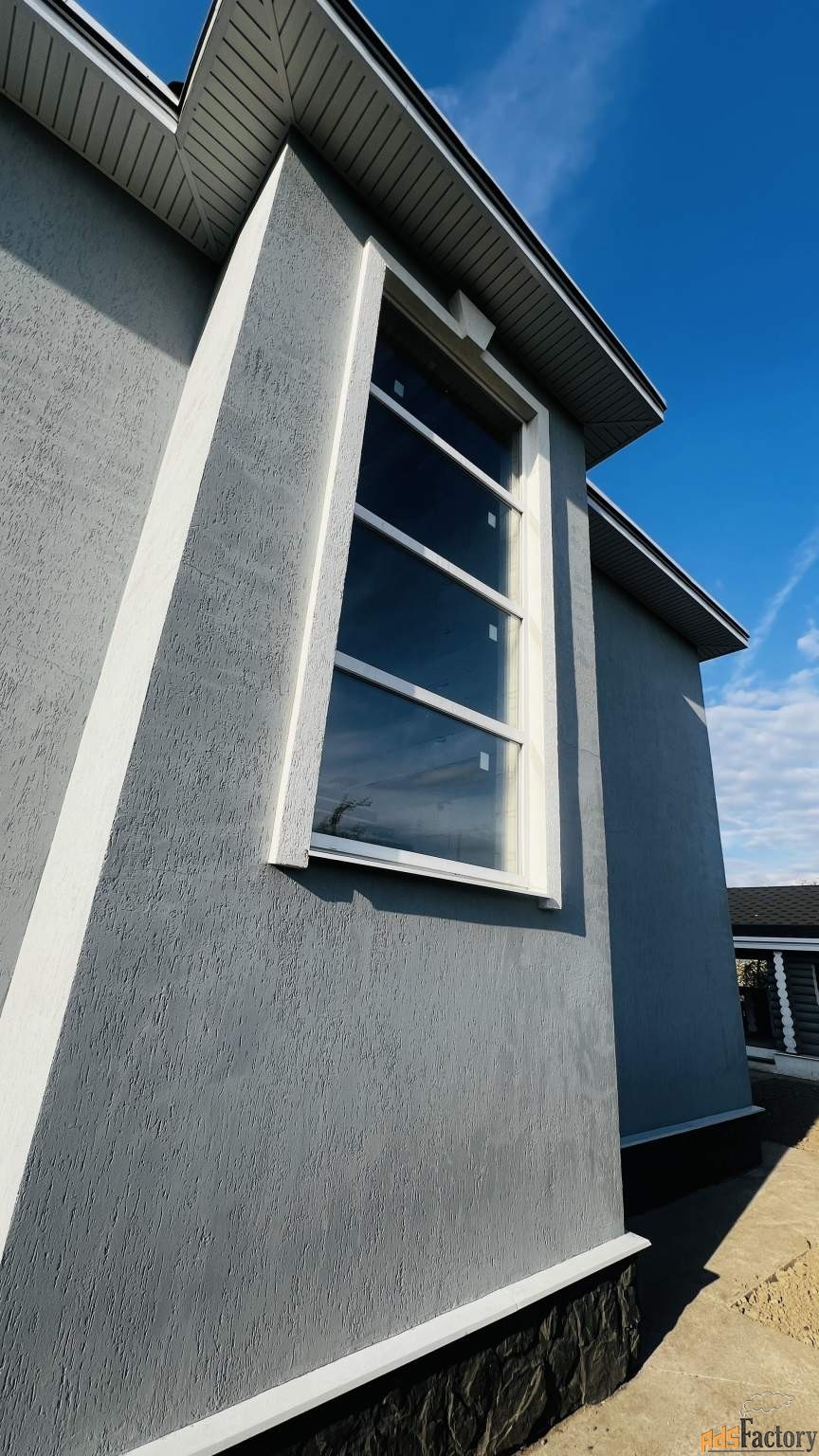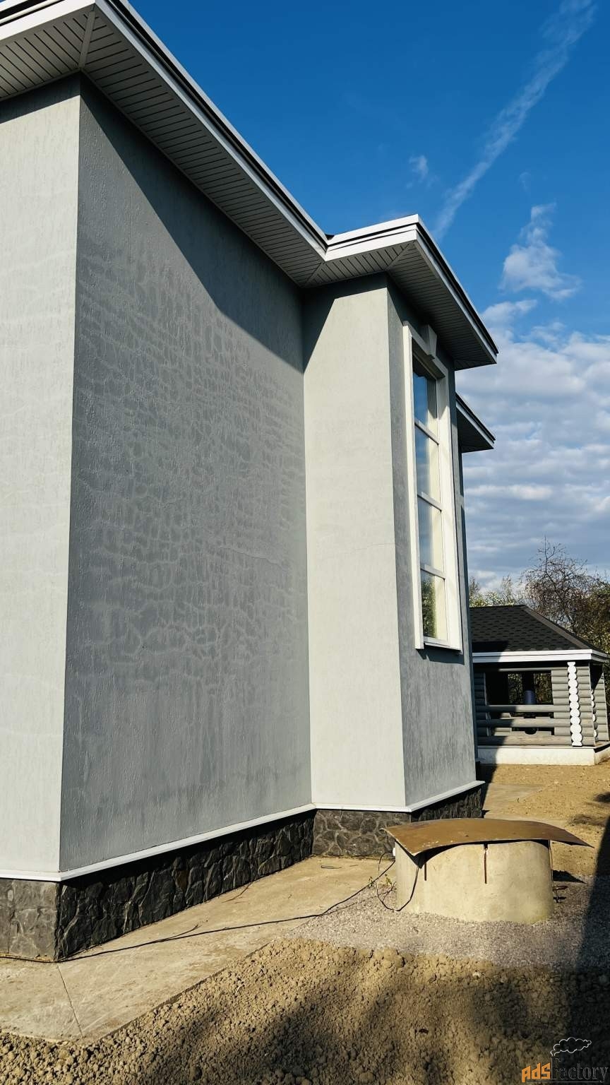 Дом стоит на монолитной плите 300 мм, стены газобетон 300 мм+ мин вата РОКВОЛ 50 мм. Перекрытия между этажами- монолитная плита. Кровля - битумная черепица Shinglas.