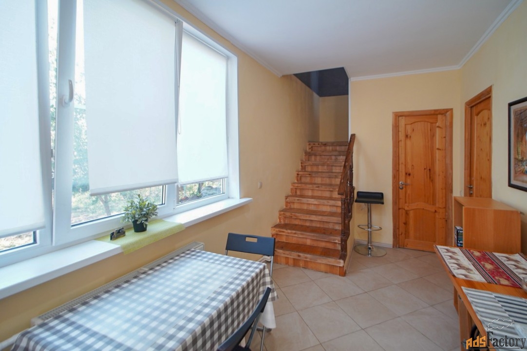 Продаётся добротный двухэтажный кирпично-газоблочный дом, расположенный в СНТ «Краснодарсельмаш-2» по адресу: ул. Цветочная, 270, г. Краснодар. Это идеальный вариант для тех, кто ценит тишину, свежий воздух и уединение, но не готов жертвовать городской инфраструктурой — до центра Краснодара можно быстро добраться как на авто, так и на электричке. Площадь дома — 113,9 м². Дом построен в 2019 году для себя, не на продажу. Стены выполнены из качественного кирпично-газоблочного материала с толщиной 30 см, что обеспечивает отличную тепло- и шумоизоляцию. Фундамент — надёжный, глубиной 1 м и шириной 40 см. Фасад отделан декоративной штукатуркой «короед». Кровля утеплена, установлен мансардный этаж. Есть полноценный погреб. Планировка дома включает: Зону готовки и светлую кухню-гостиную с керамогранитным полом и потолком из гипсокартона. Установлена газовая плита, остаются мойка и 2-контурный газовый котёл. Есть питьевой фильтр. Три жилые комнаты: Комната 1 — 14,4 м². Прямоугольной формы, с керамогранитным полом, вагонкой на стенах и потолке. Остаётся вместительный шкаф. Комната 2 — 18,3 м². Стены окрашены, пол — ламинат, потолок — ГКЛ. Установлена люстра, мебель — шкаф. Комната 3 (второй этаж) — 59,2 м². Просторное помещение правильной формы. Пол — ламинат, потолок — гипсокартон с точечным освещением. Установлены две сплит-системы. Идеально подойдёт под зону отдыха, мастерскую, домашний кинотеатр или зону open-space. Санузлы: На первом этаже — раздельный санузел с душевой кабиной (1 м²). Пол и стены — кафель, потолок — ПВХ. На втором этаже — совмещённый санузел. Прихожая: 5,6 м², прямоугольной формы, с керамогранитным полом, деревянной вагонкой на стенах и потолке. Есть вешалка, входная дверь — металлическая, утеплённая. Лестница между этажами — из паркетной доски (ясень), крепкая и удобная. Коммуникации и оснащение: Отопление — 2-контурный газовый котёл Водоснабжение — скважина глубиной 16 м Газ — центральный Электричество — центральное Интернет — «Аванта-Телеком» Установлены сплитсистемы Спутниковое телевидение (Триколор) Видеонаблюдение по периметру В доме выполнен качественный ремонт на сумму более 1,5 млн руб. Остаётся мебель и техника на сумму около 200 тыс. руб.: 2 шкафа, кожаный гарнитур, сантехника, кухонный гарнитур, плитка, котёл. Участок имеет площадь 4 сотки. Фасад — 15 метров. Территория полностью огорожена декоративным деревянным забором. Ворота — распашные. Двор аккуратно забетонирован, снаружи и внутри чисто и ухоженно. На участке — богатый плодоносящий сад: яблоня, персик, инжир, абрикос, слива, алыча, черешня, вишня, гранат, нектарин, виноград, чёрная смородина, туя, розы, пионы. Дополнительно: капитальный утеплённый сарай-хозпостройка (можно использовать под мастерскую или творческую студию), двор освещается двумя прожекторами. Инфраструктура и транспорт: В 300 метрах — живописный канал с торговыми павильонами для прогулок и отдыха До ж/д перрона — 400 м, электрички до вокзала Краснодар (20 мин, 35 руб.) Автобусные маршруты: 136а, 157а, 106а, 183а, 105а, 182а, 176а, 163а Маршрутки: 777, 121, 38 До школы — 4 км (ходит школьный автобус) До детского сада — 4 км Поликлиника — 2 км Ближайший парк — «Родные просторы» СТ благоустроенный: есть освещение, асфальтированные дороги, лавочки и озеленение. Это тихое, спокойное и дружелюбное место, вдали от городского шума. Улица утопае