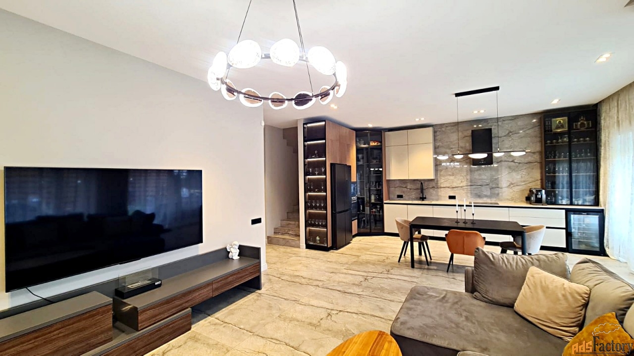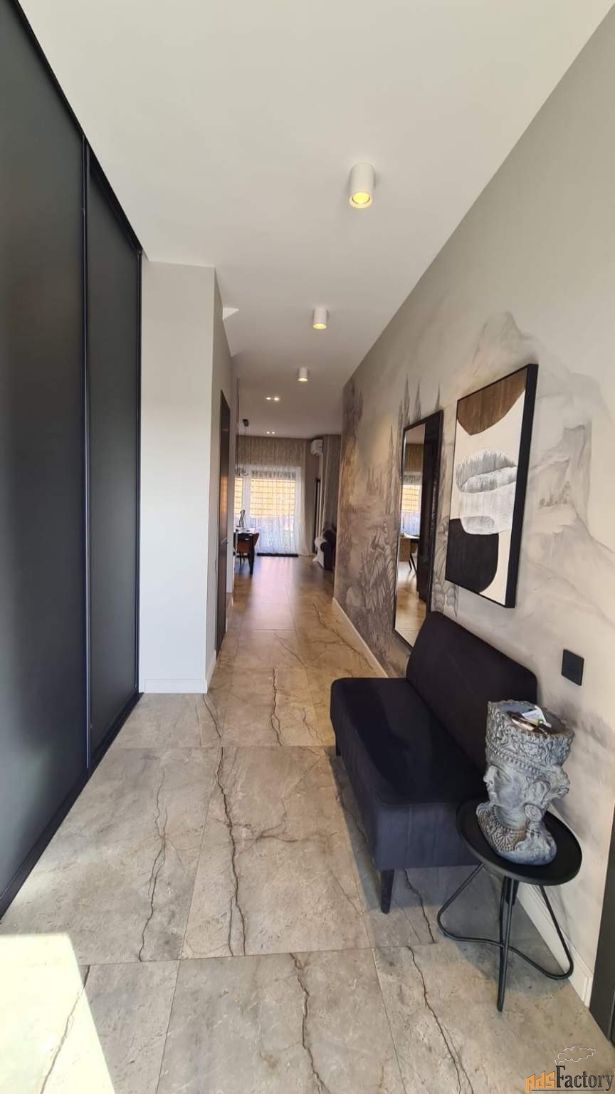 ДОМ: Двухэтажный дуплекс 186 квадратов с тремя просторными спальнями, 3 санузла и с 3 гардеробными. Большая кухня-гостиная с панорамным остеклением на веранду. Большая уютная веранда как продолжение зоны отдыха на участке. Санузел на каждом этаже. Гараж на один автомобиль. Выполнен дизайнерский качественный ремонт для собственного проживания из дорогостоящих материалов. Дизайн в уютном современном стиле в светлых тонах. Фасад отделан деревом. Было выполнено дополнительное утепление и звукоизоляция. Вся мебель и техника остается по согласованию. Фундамент - шведская утепленная плита, мягкая кровля, лиственница на фасаде, окна и внутренние коммуникации Rehau.