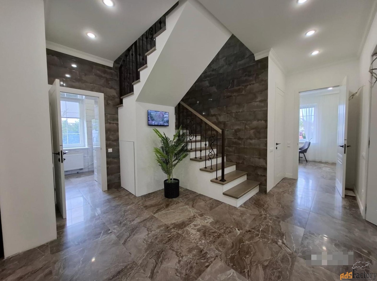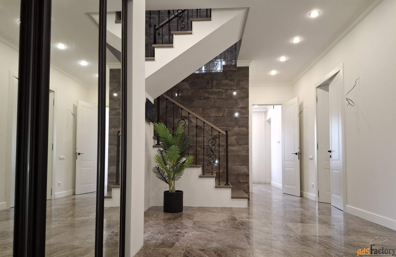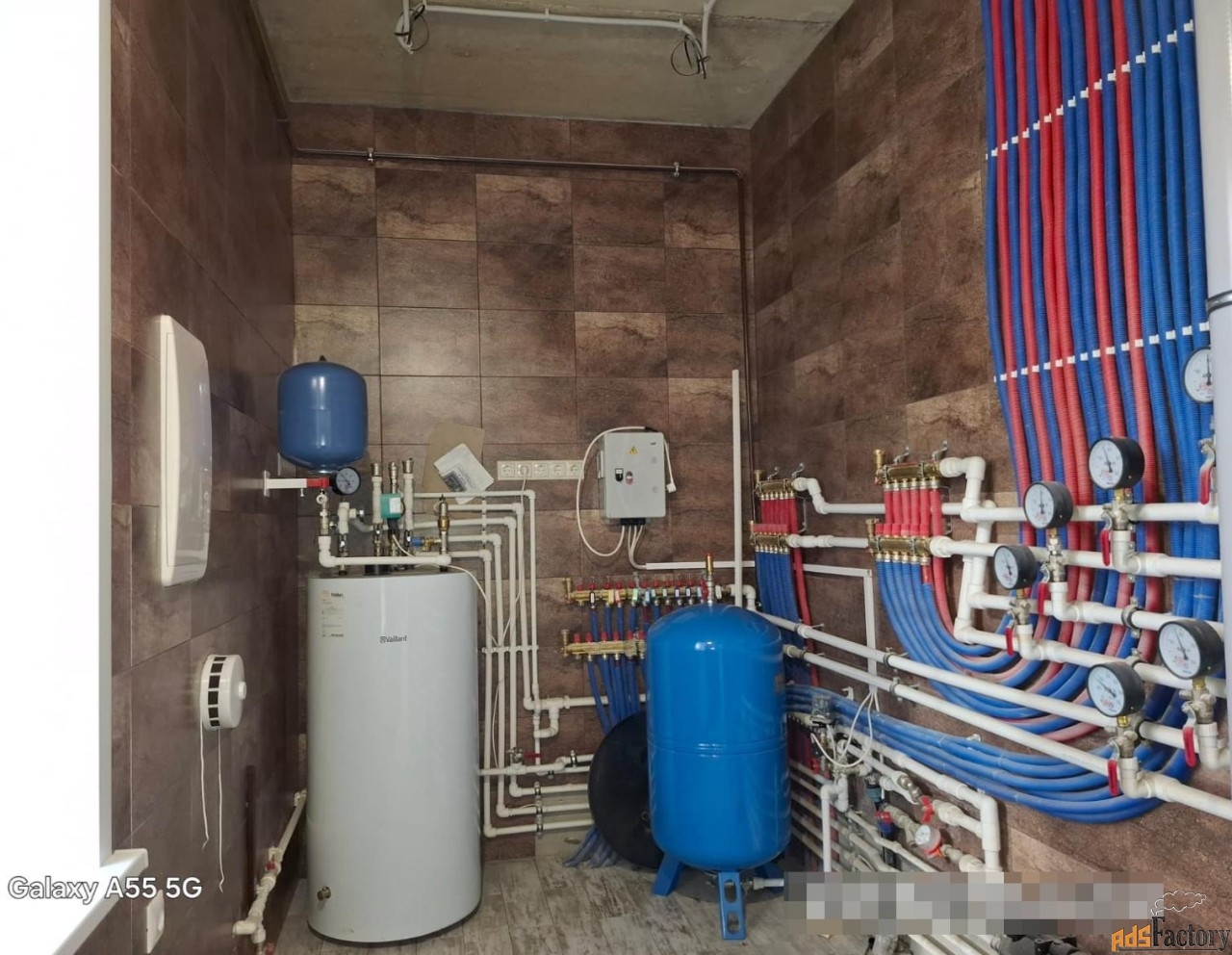 Коммуникации: центральное газоснабжение, электроснабжение, центральное водоснабжение, скважина, канализация септик, отопление-котел газовый вайлант, финские радиаторы. Теплый пол - шитый полипропилен «Рехау» на 1-м этаже, лоджии и санузлах 2-го этажа. 170 эл. розеток. Лестница дуб+ковка, очень комфортный подъём. В одной из спален свой с/у. Кондиционеры. 2 гардеробные на 1 эт.