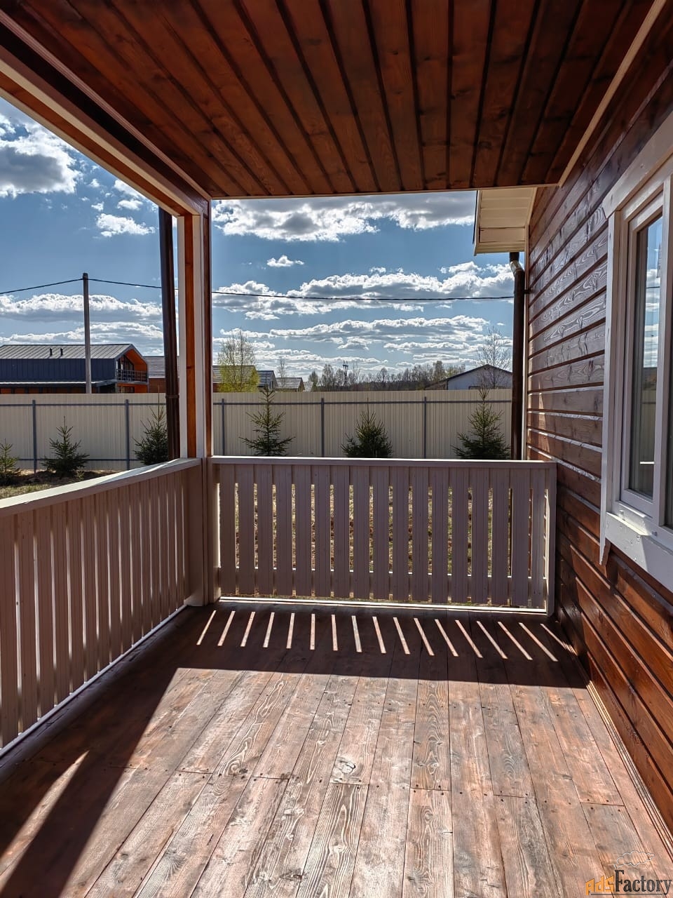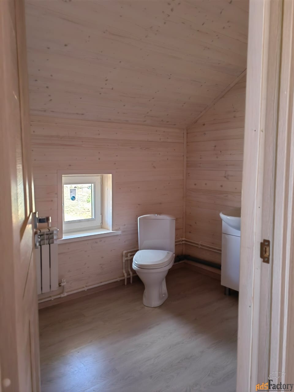 Современный новый дом для круглогодичного проживания 160 кВ м, участок в лесу 9 соток. Брус 150 мм , утеплен по всему периметру в два слоя мин ватой Изорок, ленточный армированный фундамент, крыша металл-черепица с утеплением; внутренняя и внешняя отделка имитация бруса; двухкамерные стеклопакеты; автономная канализация, отопление ,электричество(15 квт),вода-колодец, разведено по дому, сантехника установлена.