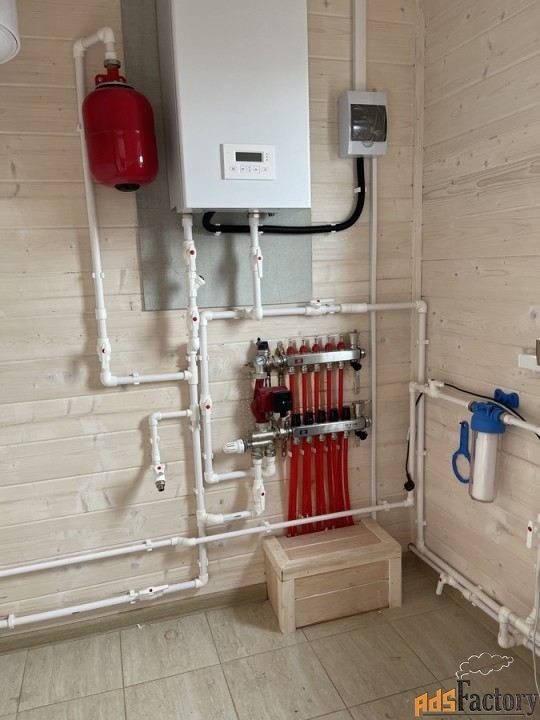 Установлен электро котел, 1 этаж теплый пол, плитка,2-й этаж батареи . Электричество заведено в дом и разведено по местам потребления. Также в доме установлены: душевая кабина, умывальник, насосная станция, унитаз, электрический бойлер для нагрева воды- первый санузел и унитаз, умывальник- второй санузел.