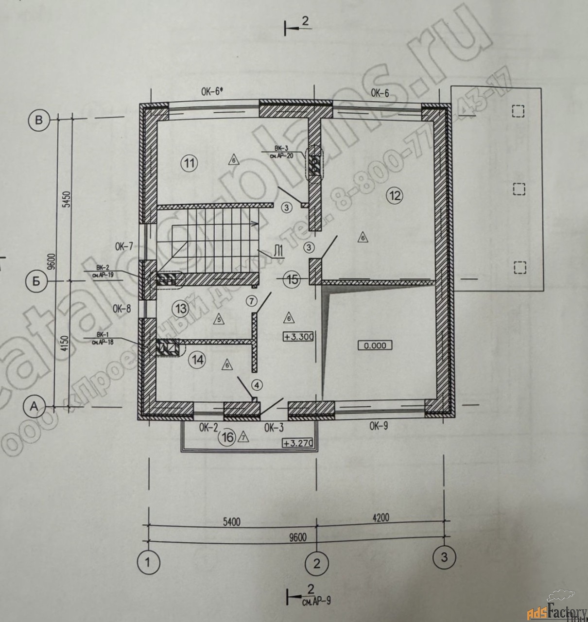 2 этаж: 2 спальни, гардероб, санузел, холл