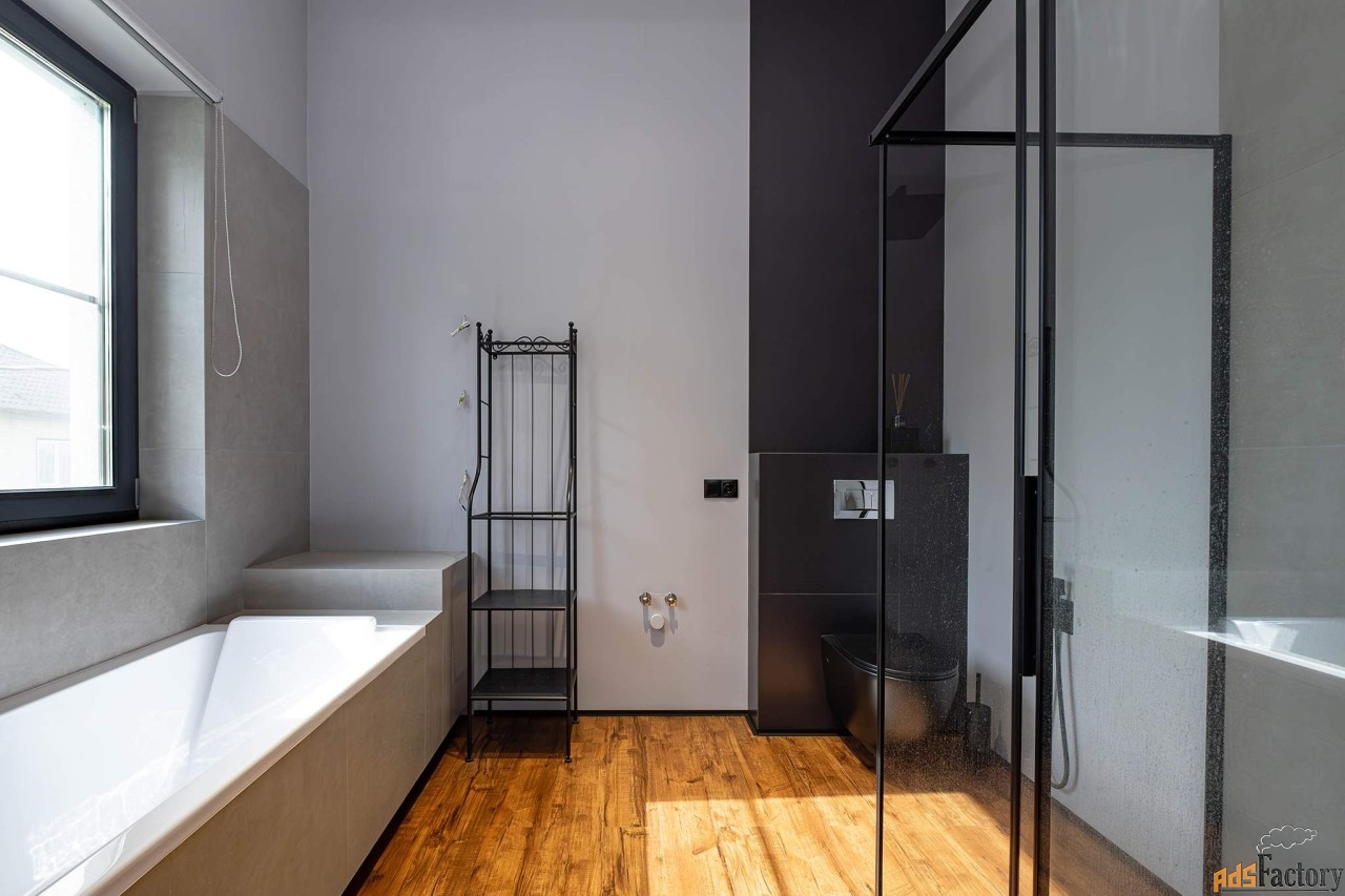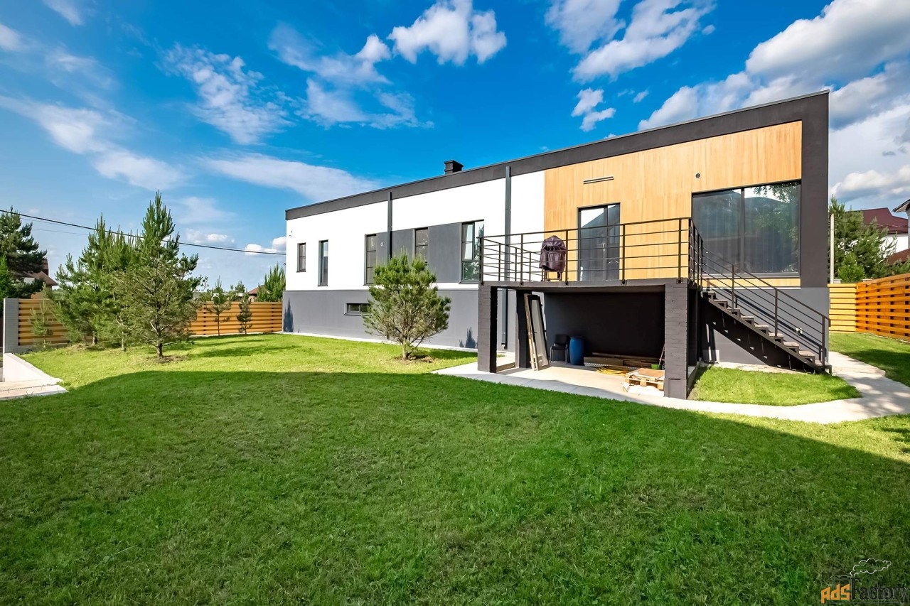 Дом построен в 2024 году по всем современным стандартам: свайно-ростверковый фундамент, стены из газоблоков «Сибит-400» (600 мм), ж/б перекрытия, декоративная штукатурка и керамогранит, мембранная крыша (с возможностью эксплуатации, срок службы 50 лет). Площадь — около 300 кв.м с цоколем.