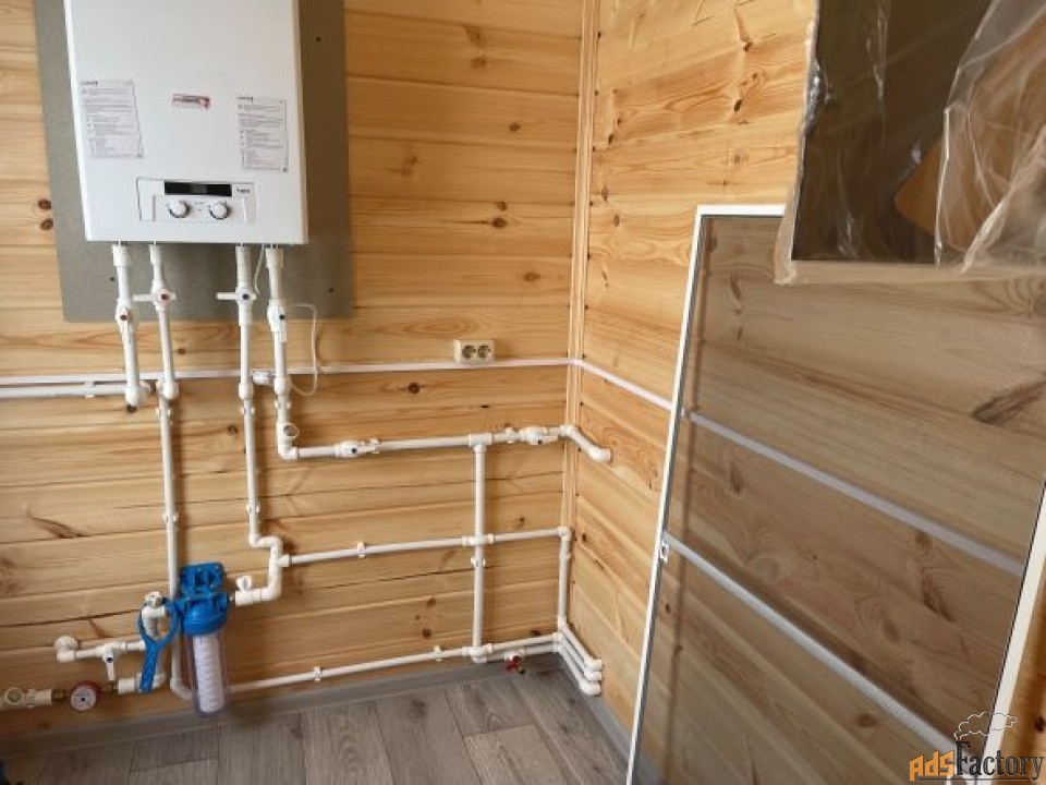 В доме все коммуникации: Электричество подключено и разведено по дому (выделено 15 кВт), вода заведена в дом, горячая вода от водонагревателя на 120л, также выведена вода на улицу для полива, канализация - три кольца, отопление автономное котла с разводкой по всему дому. Газ.