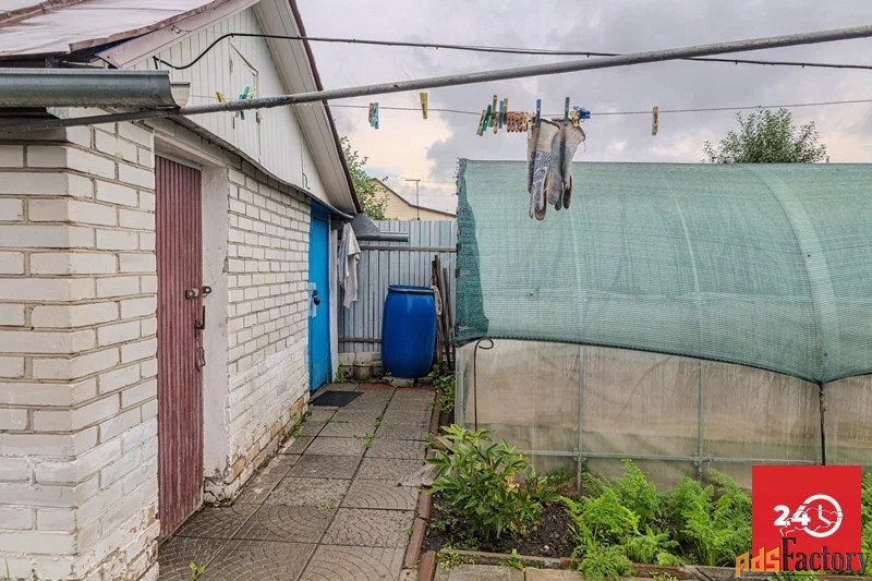 2 изолированные комнаты 28,4 кв.м и 16,3 кв.м. Так же гостиная комната (проходная) 15,8 кв.м. Кухня 7 кв.м (остается кухонный гарнитур, плита, обеденный стол и стулья). Туалет в доме и во дворе.