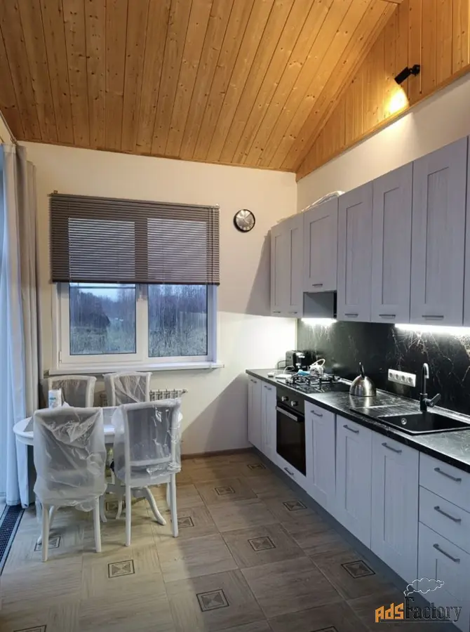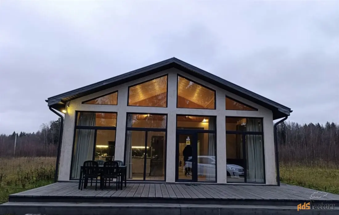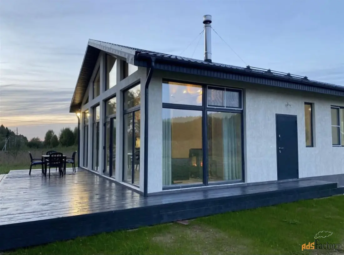 Дом построен в 2020 году, 83 кв.м. + открытая веранда. Фундамент железобетонный ленточный- ростверк ниже глубины промерзания, лва армопояса, стены из пенобетонных кирпичей 300 мл., утеплитель, отделка снаружи-короед. Изнутри влагостойкий гипсокартон и обои (Франция, Германия). Двухкамерные стеклопакеты Rehau. Просторная кухня-гостинная с камином, с выходом на просторную открытую террасу. Высота потолков в кухне-гостинной 5 метров. Окна панорамные в пол со вторым светом. Две спальные комнаты, душевая с санузлом. Так же санузел в бойлерной. Дом уже укомплектован мебелью и техникой!