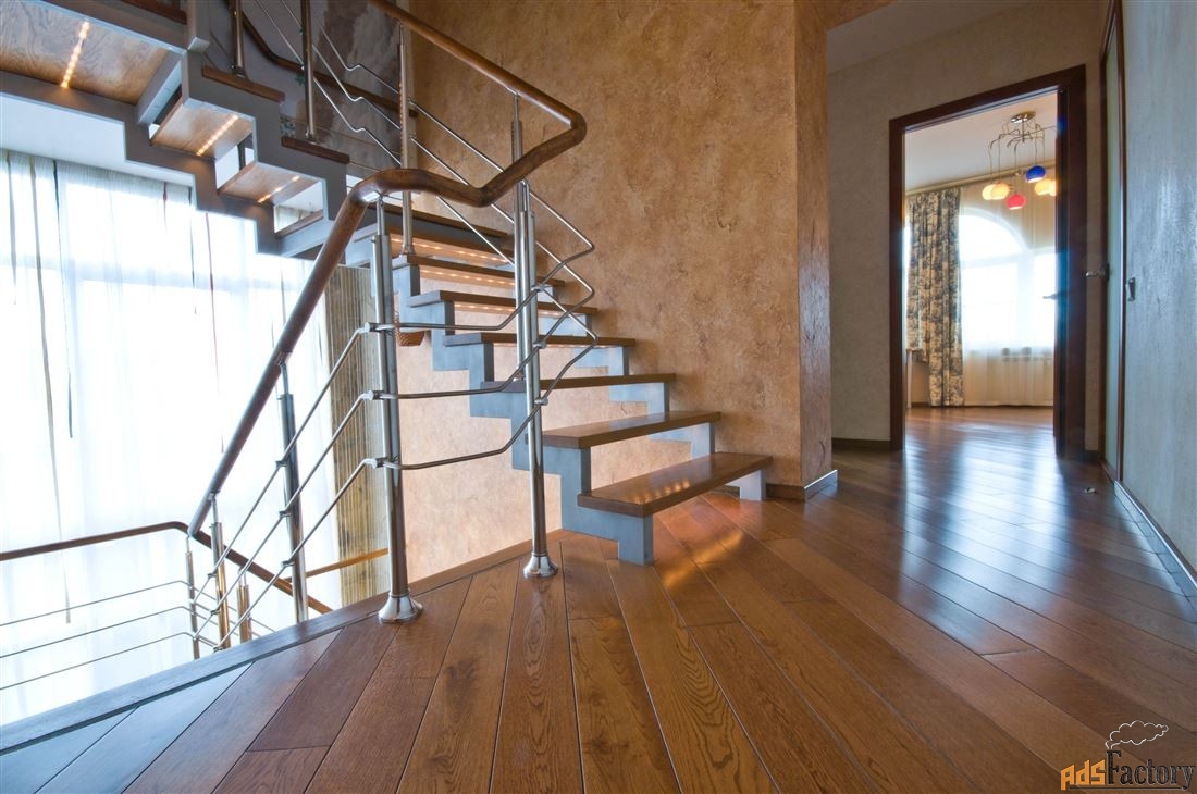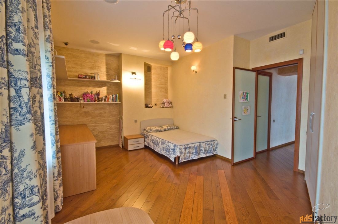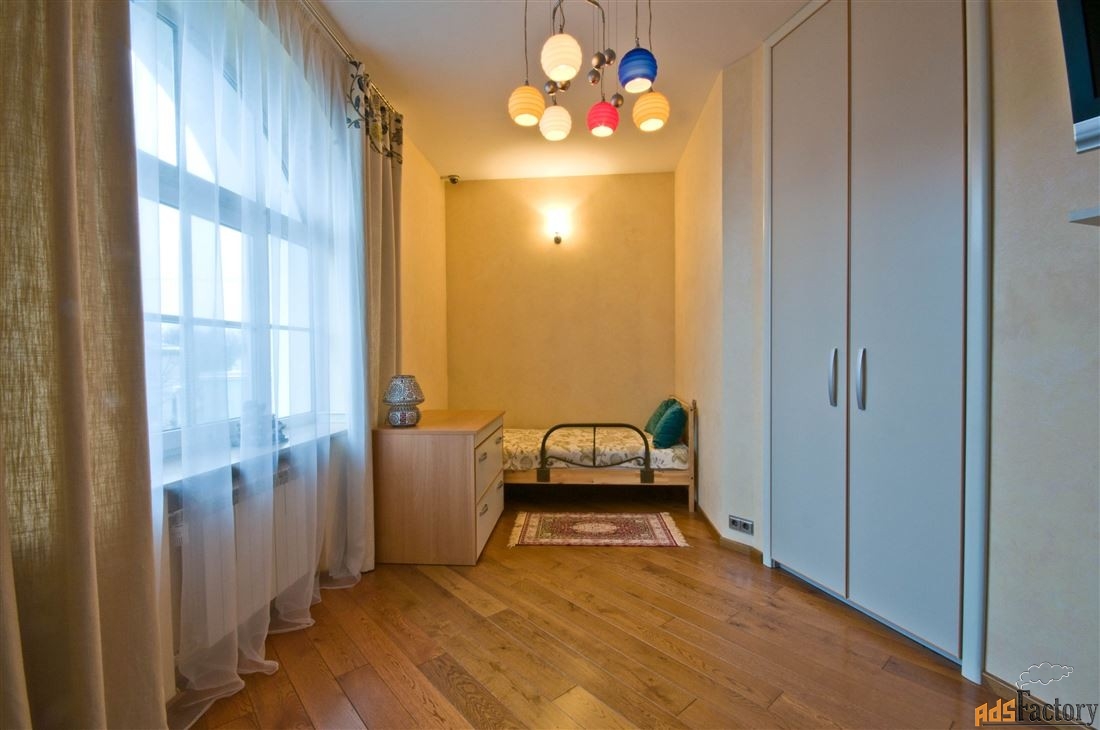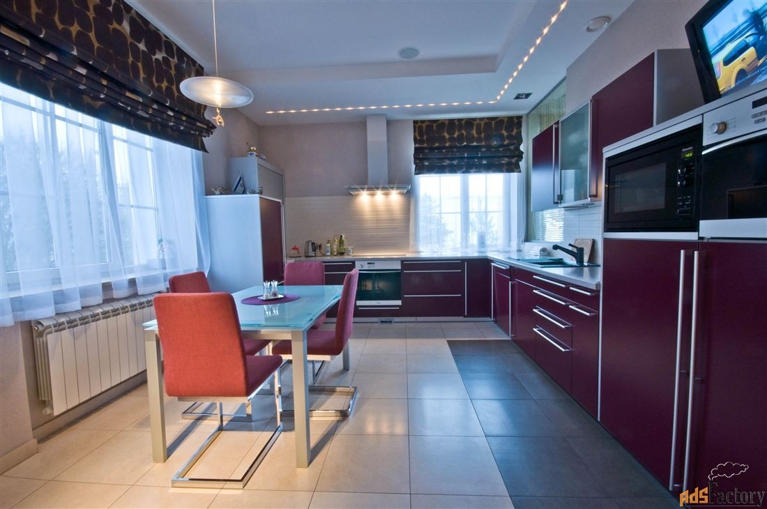 Современный интерьер, укомплектован дизайнерской мебелью и сантехническим оборудованием, мировых производителей. Авторские витражи и роспись на стенах выполнены профессиональными мастерами. Кухня и бытовая техника «Miele».