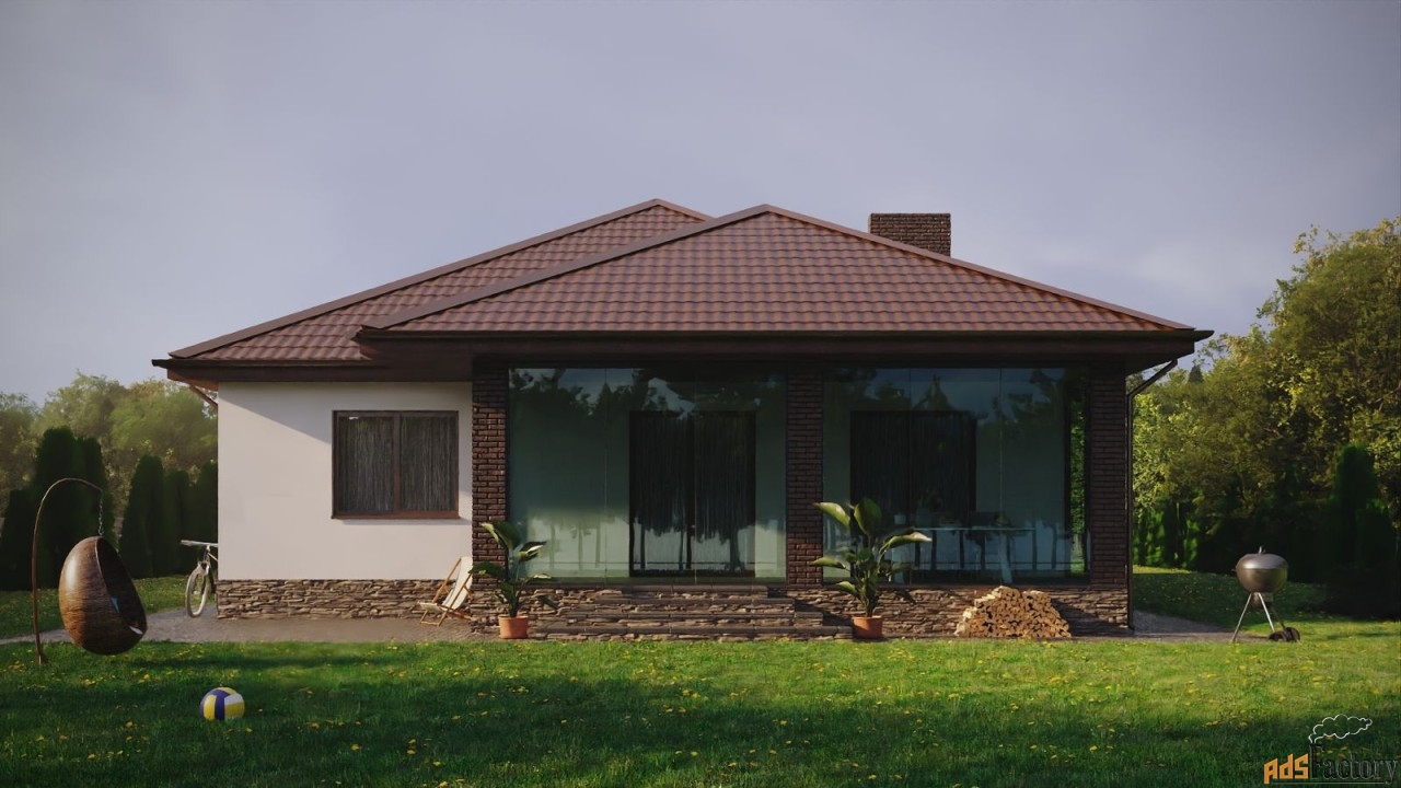 Планировка дома: мастер-спальня и две гостевые спальни, просторная кухня-столовая комфортная гостиная с выходом в зимний сад.