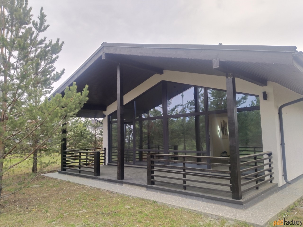 Оптимальный вариант Дома, выполнен в современном стиле Фахверк со вторым светом, жилой площадью 100м2. Удобная планировка, просторная кухня с выходом на крытую террасу, панорамное остекление.