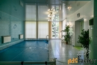 Отдохнуть и расслабиться можно в сауне и поплавать в собственном бассейне с панорамным остеклением!