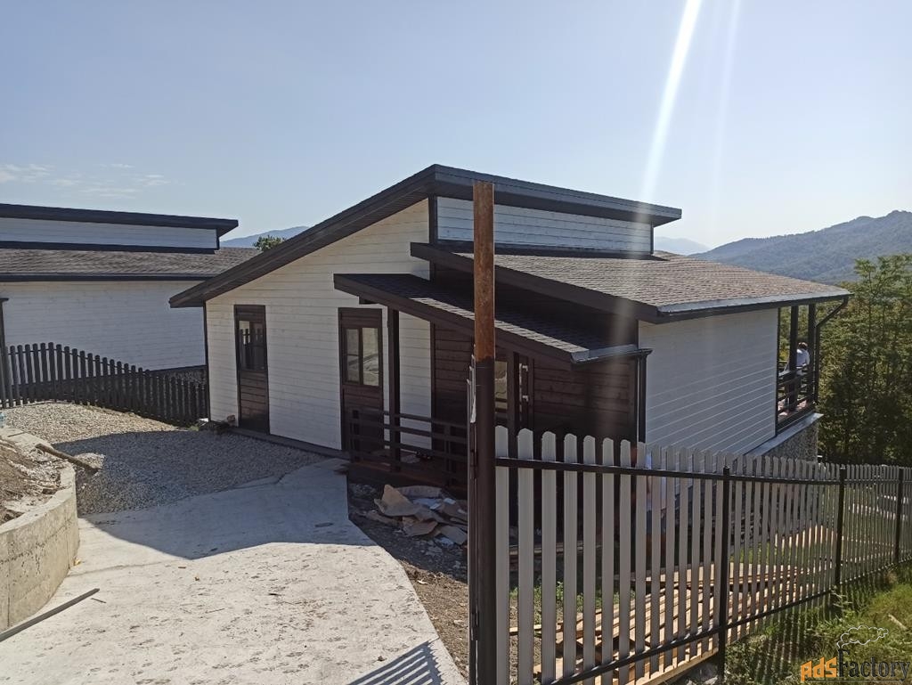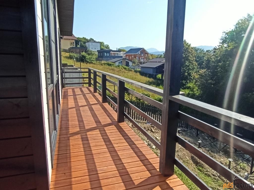Дом в экологически чистом, зелёном районе города Сочи. В окружении заповедной природы и в тоже время в центре цивилизации с доступной инфраструктурой. Дом возведён по канадской технологии и соответствует СП 31-105. 4 комнаты, большая терраса 12 м.кв. Вода центральная, электричество 15 квт, канализация лос. Мягкая кровля. Освещение территории с датчиками движения. Ремонт под ключ. Выведены трассы под кондиционеры. Бойлер на 80 л., уже установлен. Регулируемый тёплый пол. Расстояние до основной дороги и остановки 350 м. по бетонной дороге.