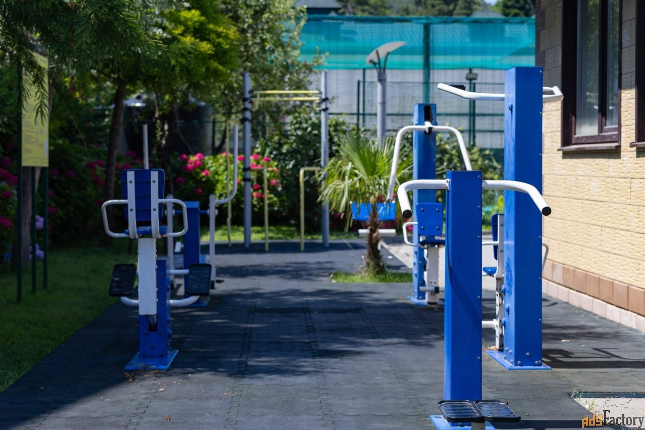 Территория закрытая. Выполнено благоустройство и озеленение, оборудованы детские, спортивные и игровые площадки.