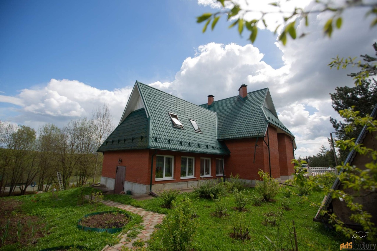 На участке расположен кирпичный коттедж, полностью готовый к проживанию, невероятно уютный и очень функциональный. Интересная планировка, гостиная со вторым светом, спальни на первом этаже, зимний сад и кухня. Также оборудована сауна. На втором этаже три спальни, огромная гардеробная - мечта любой женщины, бильярдная для отдыха. Есть кухня для обслуживающего персонала. Есть выход на террасу для отдыха с видом на потрясающую природу Подмосковья.