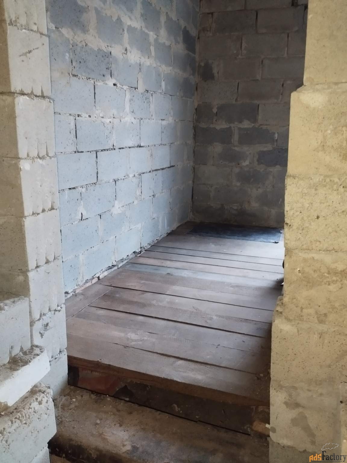 Конструкция: Дом в стадии строительства. Стены — блоки, высокая крыша установлена неесколько лет назад, в хорошем состоянии. Внутри — чистый лист для ваших идей.