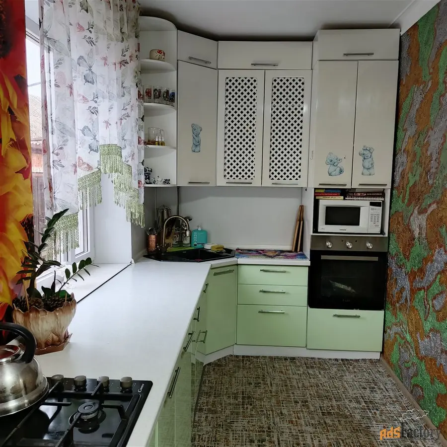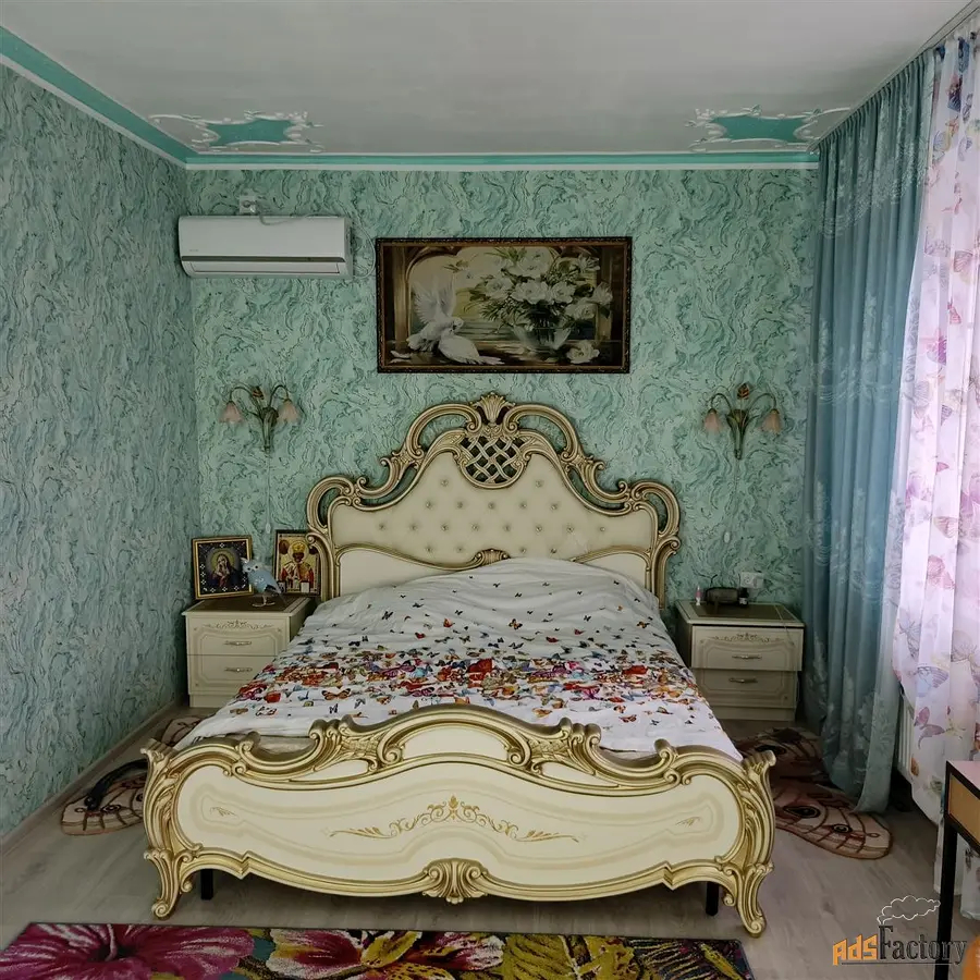 На 1-м этаже -гардеробная, кухня, гостиная, ванная. Канализация центральная. На 2-м этаже: 3-изолированные комнаты, гостевая комната. На территории -каминная, гараж, летняя кухня, летний душ и туалет, баня, беседка с качелей. Скважина, сад с фруктовыми деревьями До г.Ейска и Азовского моря 29 км. Любая форма оплаты.